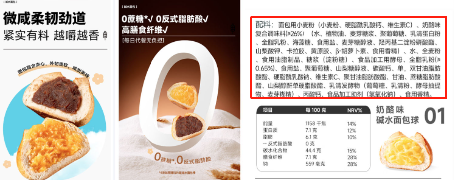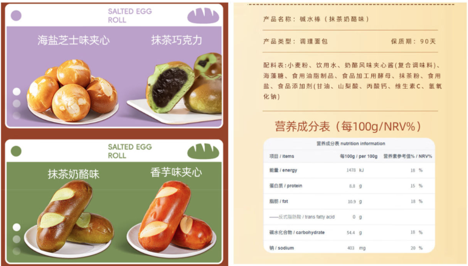 口味改良的堿水面包配料表并不簡單(某購物平臺截圖)