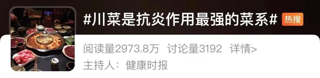 今年3月,研究人員對魯菜、川菜、粵菜、閩菜、蘇菜、浙菜、湘菜和徽菜八大菜系進行了分析。結果顯示,不同菜系在能量和營養成分上存在顯著差異。其中,川菜最油卻最“抗炎”引起網友關注。