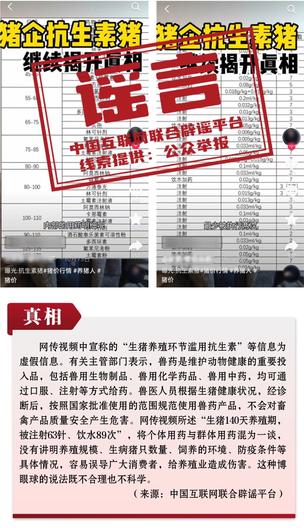 謠言10:生豬140天飼養周期內用34種抗生素?