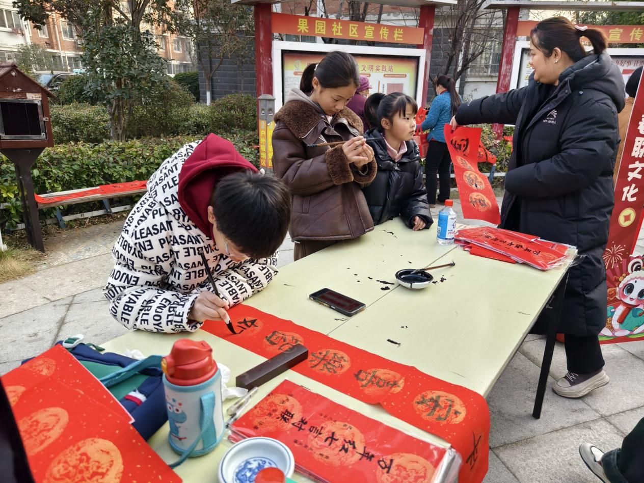 居民們被書法老師的精湛技藝深深吸引,紛紛躍躍欲試,在老師的指導下拿起毛筆體驗書寫。小朋友們更是認真,稚嫩的小手緊握著筆,一筆一劃書寫著對新年的期待。當一幅幅春聯完成,大家便迫不及待的拿著作品來到打卡點拍照留念。