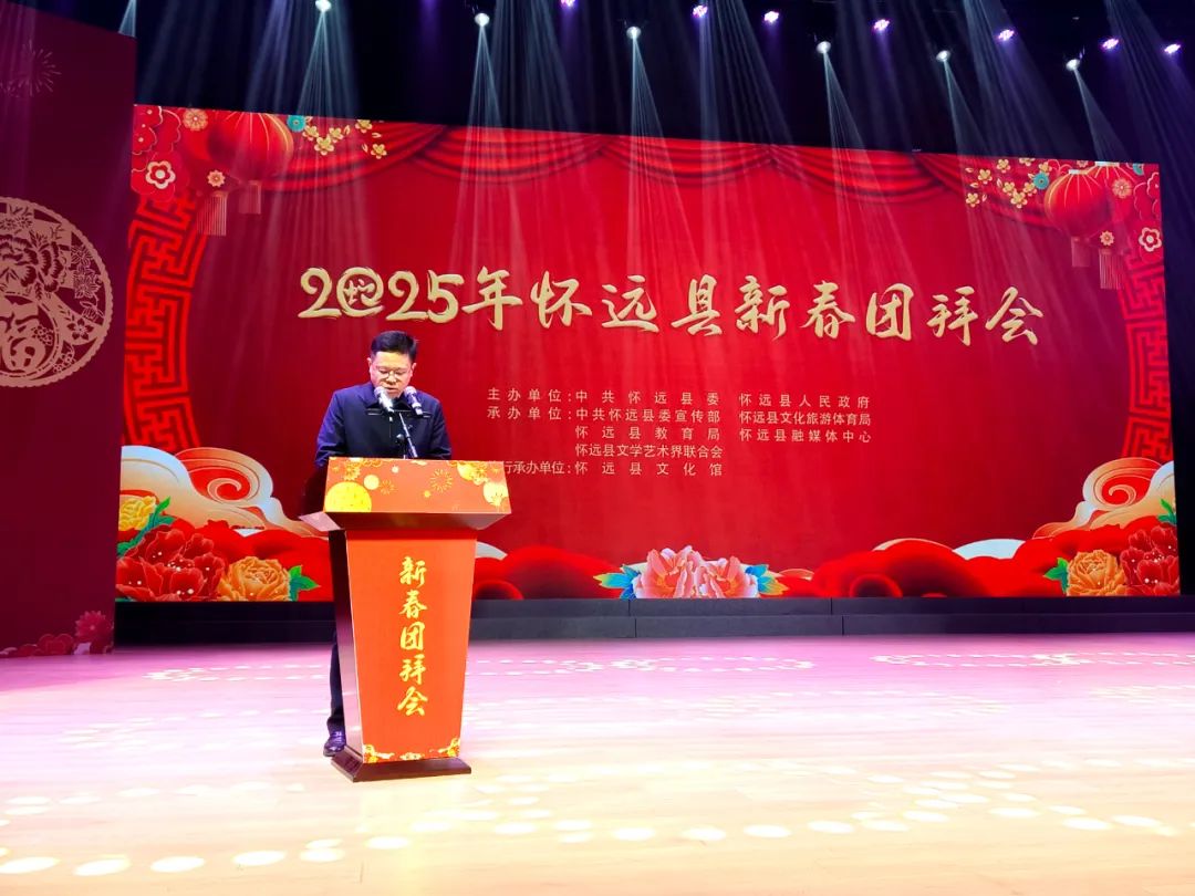 祥龍攜瑞辭舊歲,金蛇送福啟新程。1月24日下午,懷遠縣2025年新春團拜會舉行,全縣各界人士歡聚一堂,共迎新春佳節,共話發展大計。市委常委、縣委書記潘君齊出席團拜會并致辭,高東升、王五洲、陳照祥、許漢生等縣四大班子領導參加。