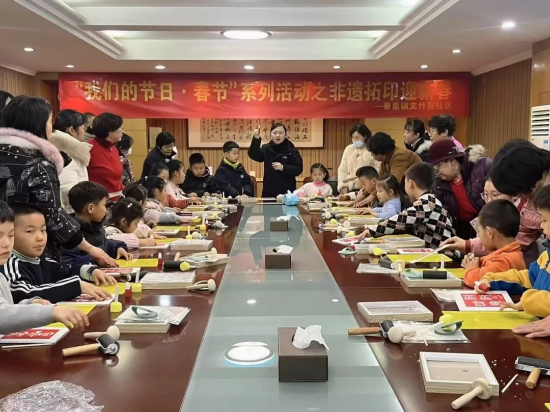 文竹苑社區、黃山村、東周村將非遺拓印帶到孩子們面前,與這一古老傳統技藝的接觸,使對傳統文化的敬畏與熱愛在孩子們幼小心靈中綻放光芒。一個個圓潤飽滿、寓意吉祥的圖案呈現在紅紙上,將新年的福氣與歡樂送進居民家。