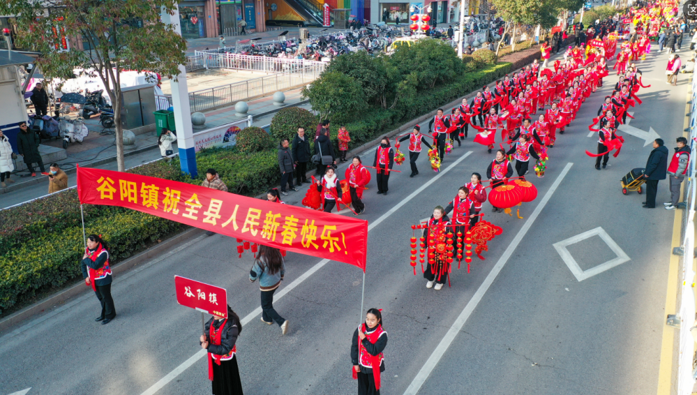 1月30日,大年初二,固鎮縣舉辦“歡歡喜喜過大年”2025民俗踩街活動。來自全縣十一個鄉鎮民俗表演隊伍和文化志愿者480多人,組成踩街隊伍身著盛裝,踩著歡快的步伐,走上街頭,用靈動的表演向大家展示“谷陽風采”,用絢麗的色彩向大家問候“新年快樂”。