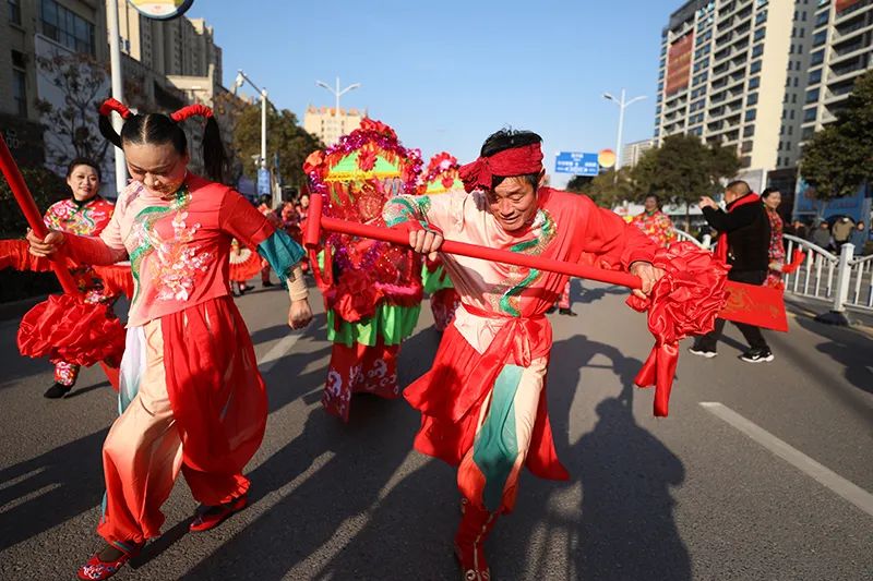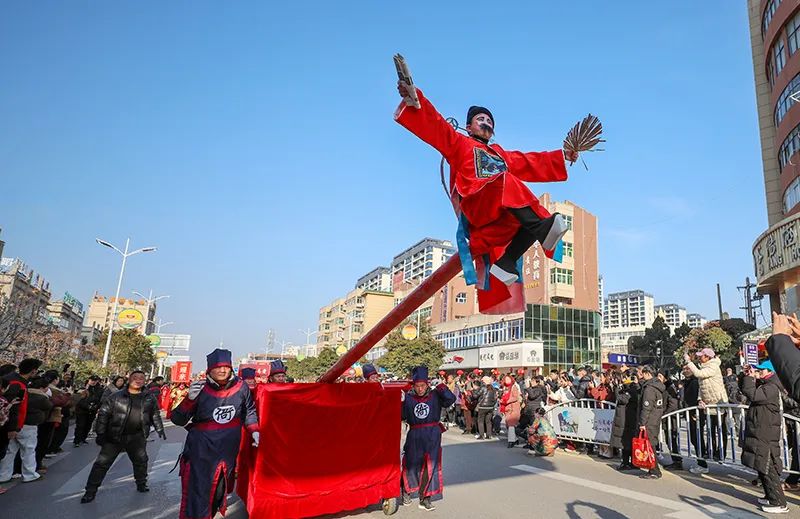 獨桿轎、董廟舞獅、垓下舞龍、谷陽旱船等非物質文化遺產節目,與甩龍、腰鼓、挑花籃等民俗展演相互交織,構成一幅歡樂祥和的節日畫卷,更是讓廣大市民領略到外地的非遺文化的魅力。