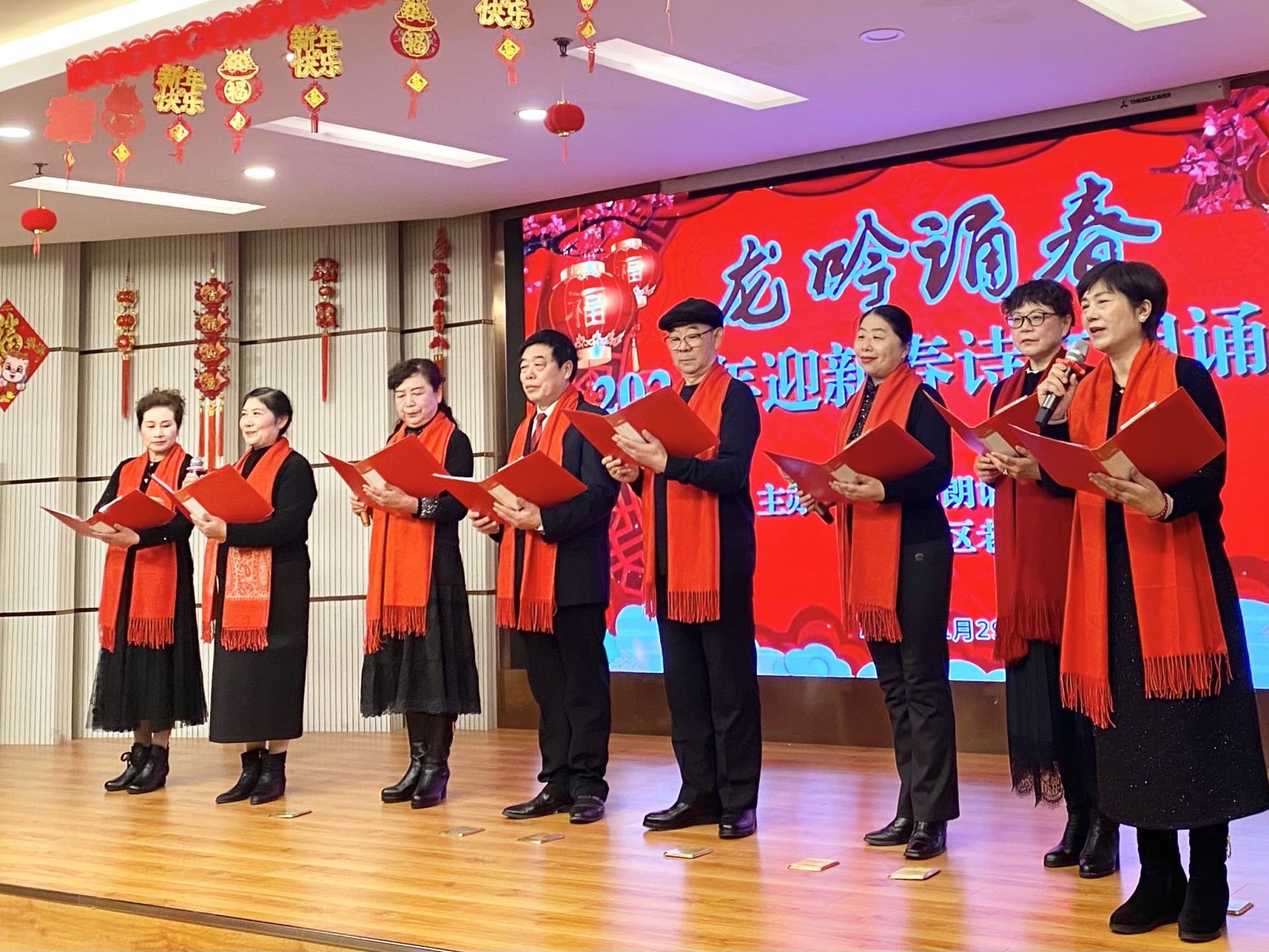1月29日下午,在由龍子湖區老年大學與蚌埠市朗誦藝術協會聯合舉辦的“龍吟誦春”2024年迎新春詩文朗誦會上,眾多朗誦愛好者歡聚一堂,以朗誦的名義,以詩歌的情懷,歌頌祖國,贊美春天,歡歡喜喜迎接龍年春節到來。