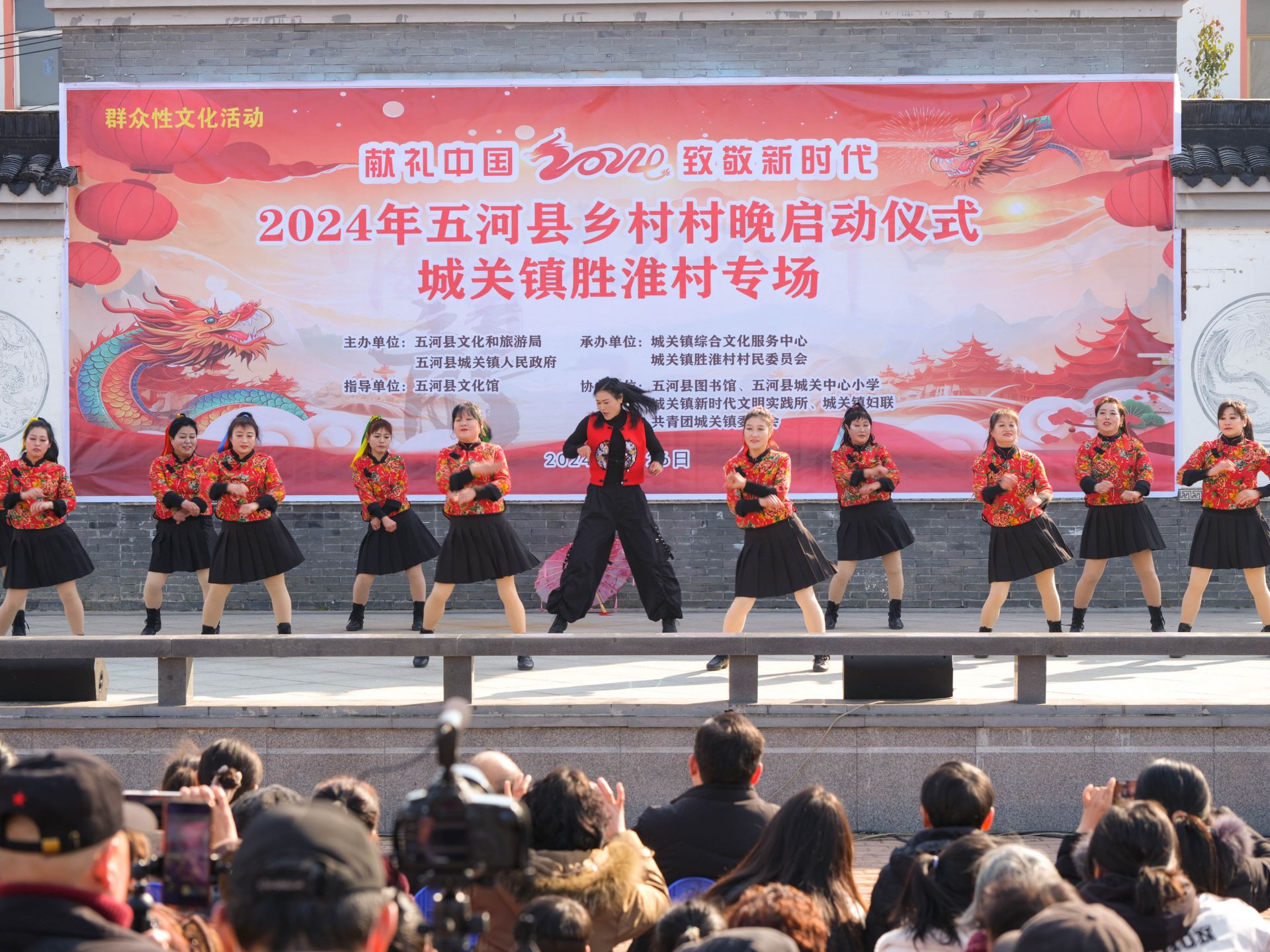 鑼鼓喧天,歌舞飛揚。1月26日,2024年五河縣鄉村村晚城關鎮勝淮村專場歡樂開演,村民自編自演的節目吸引眾多鄉鄰駐足觀看。