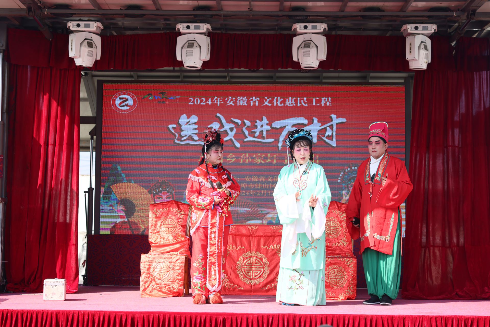 2月11日,正月初二,2024年安徽省文化惠民工程“送戲進萬村”演出活動在蚌山區燕山鄉孫家圩子村舉行,為村民帶來一場精彩的非遺文化盛宴。