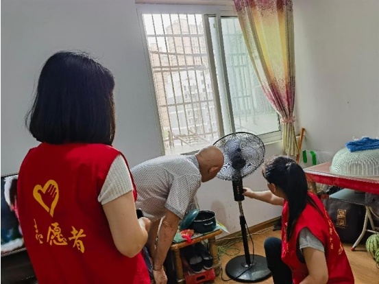 社區始終將獨居老人、殘障人士等特殊群體的生活冷暖掛在心間。望山社區組織志愿者深入特殊群體家中,細致檢修空調、電扇等降溫設備,全力保障設備安全正常運轉,為他們驅散夏日燥熱、送去清涼。志愿者們還耐心與老人、殘障人士溝通交流,悉心了解他們在生活中的實際需求與困難,及時提供針對性幫助,讓特殊群體在酷暑時節切實感受到社區的貼心關懷與溫暖。