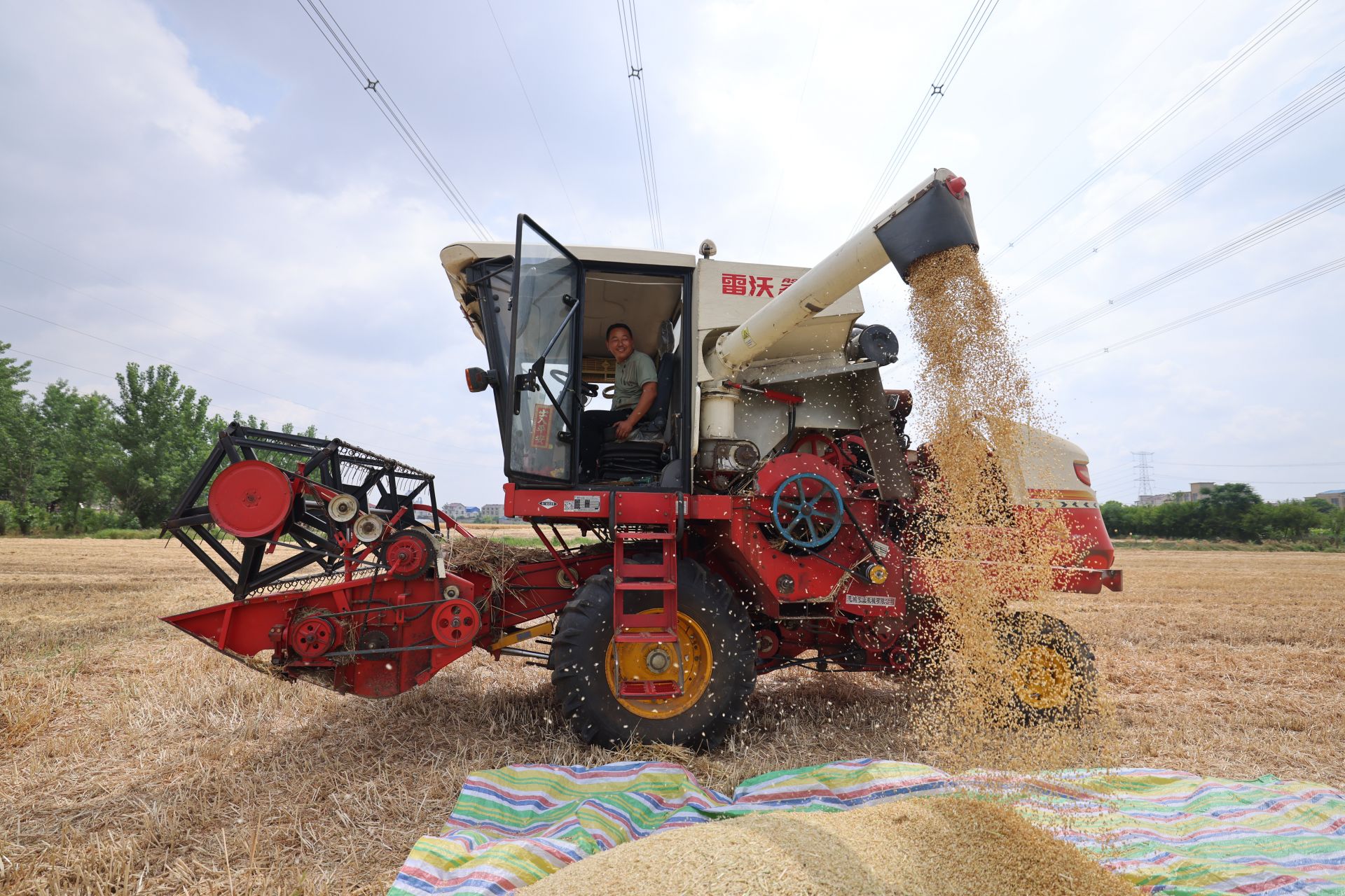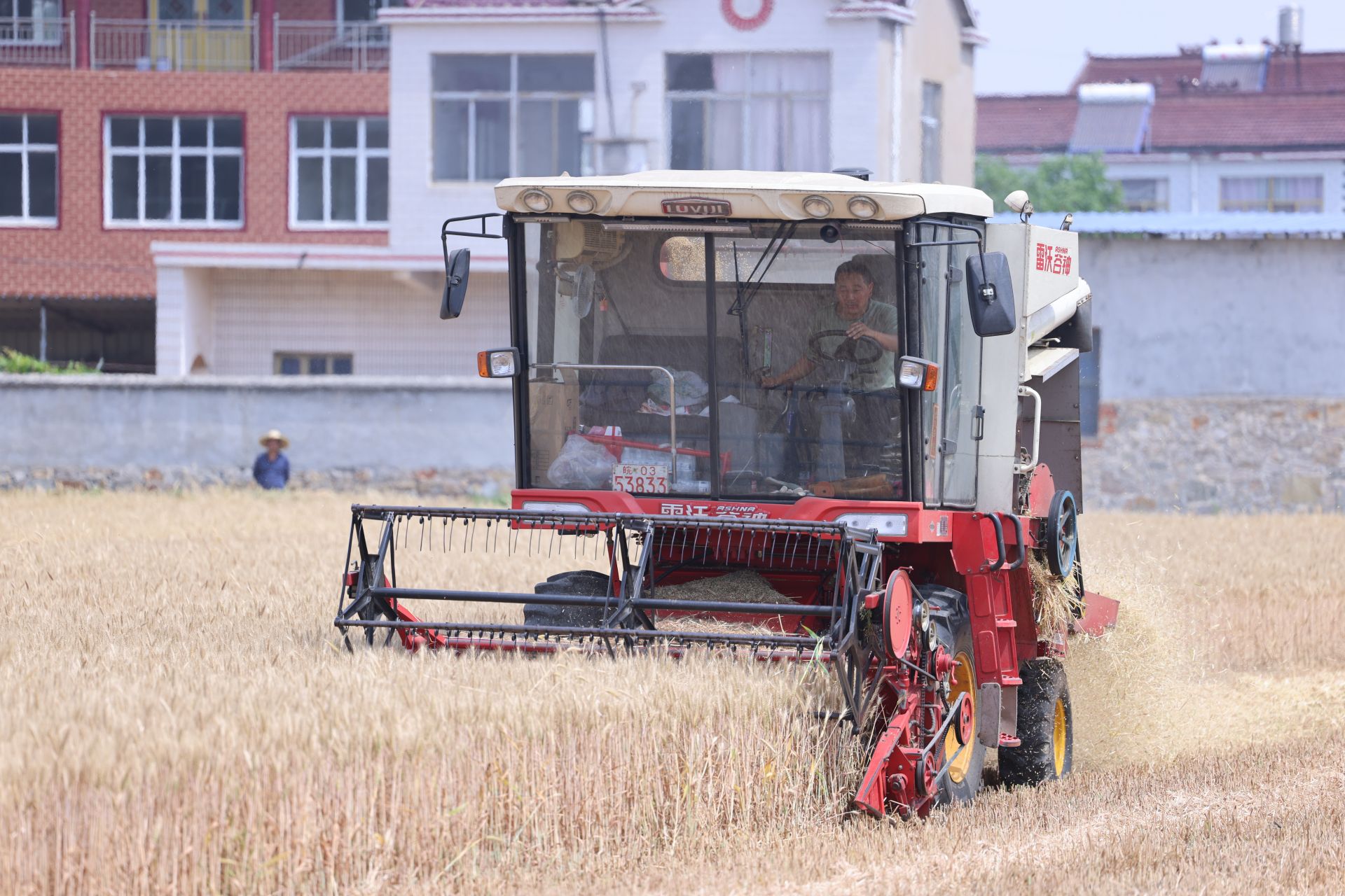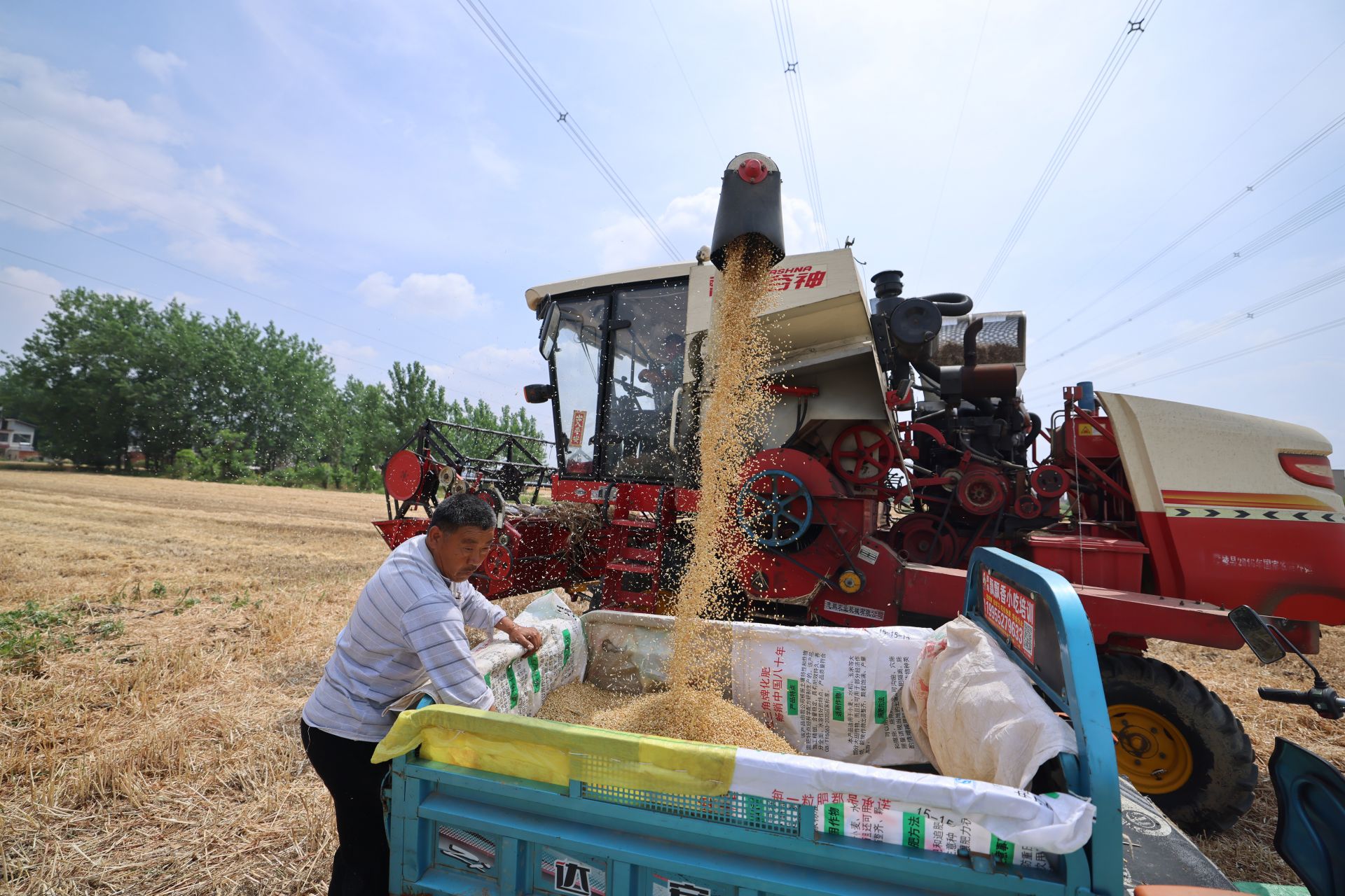 記者在該鎮黃郢村看到,收割機在麥田里忙碌不已,每隔一段時間,就會將收獲的小麥倒入三輪車內,清空收割機糧倉后繼續收割,不放過田間地頭每一片麥田。