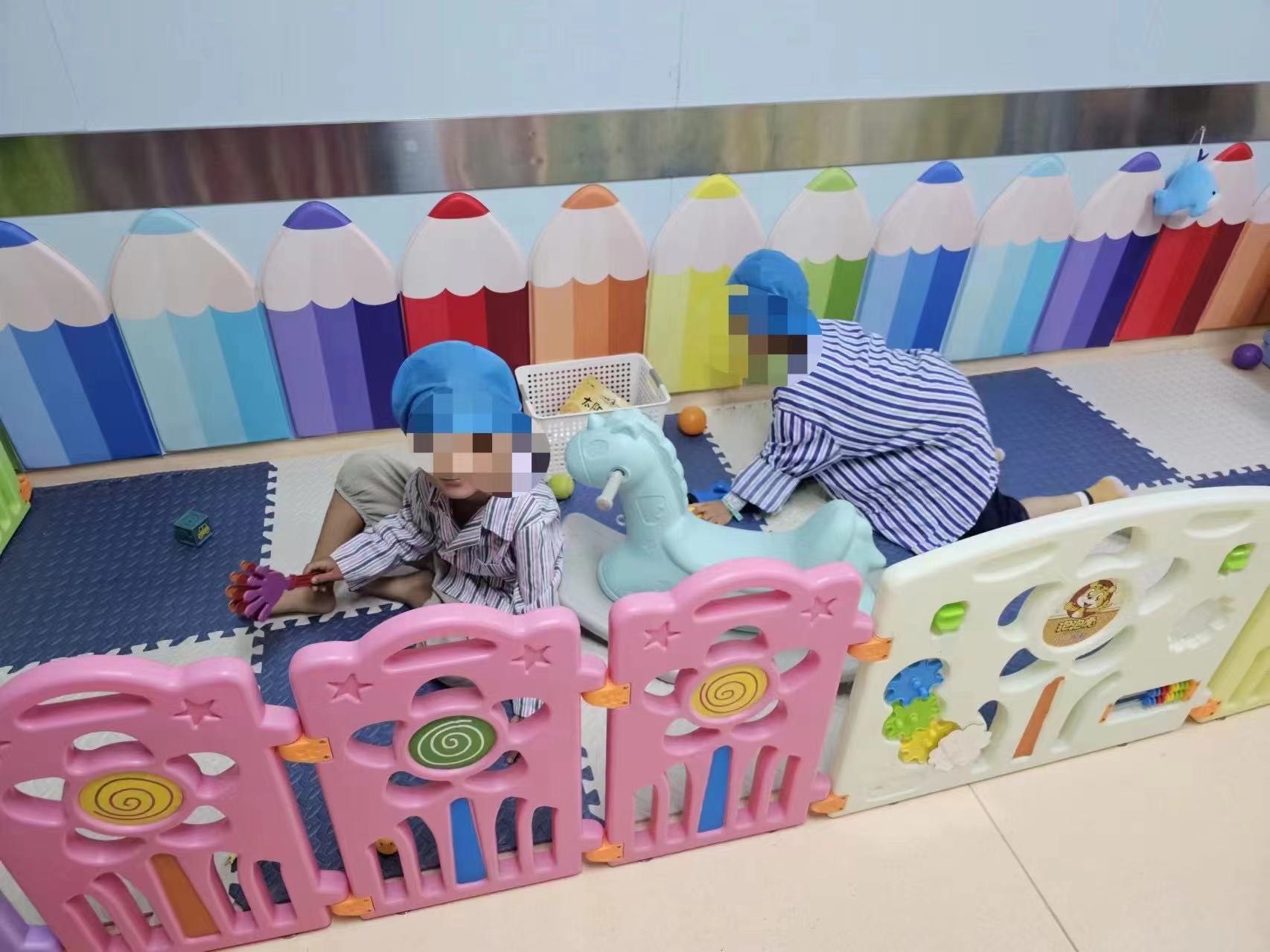 在手術等候區,能看到這里有滑滑梯、漫畫書、故事書等物件,還有各種動漫貼畫,充滿童趣。等待手術時,孩子由家長陪伴玩耍,緩解緊張情緒和焦慮感。當然,孩子們還可以和自己最喜愛的玩具一起進入手術室。