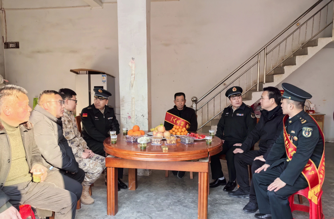 12月23日,固鎮縣退役軍人事務局聯合縣人武部及火箭軍某部為濠城鎮華巷村榮立“三等功”現役軍人候丁永家屬送喜報,將榮譽與關懷送達軍人親屬身邊。