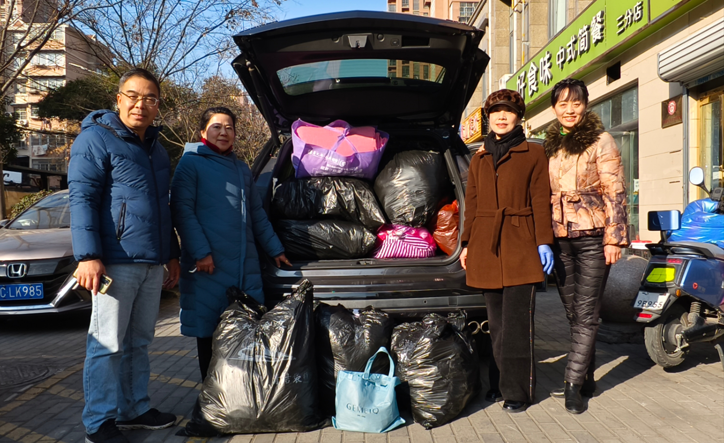 市環(huán)保公益協(xié)會(huì)志愿者和駐村干部一起把過(guò)冬衣物打包裝車(chē)。