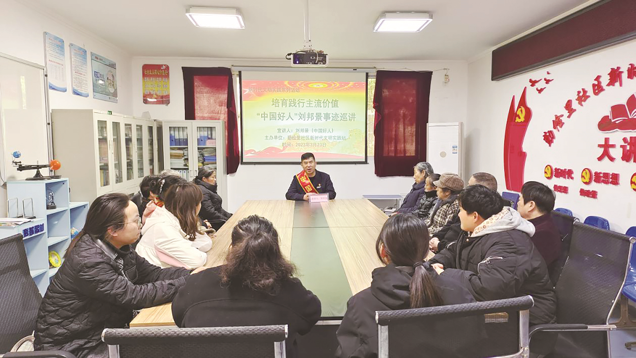 近日,東風街道勤儉里社區新時代文明實踐站邀請“中國好人”劉邦景開展專題宣講,分享交流先進事跡和心得感悟,進一步弘揚好人精神,營造崇德向善、見賢思齊的社會風尚。( 陸靜 攝)