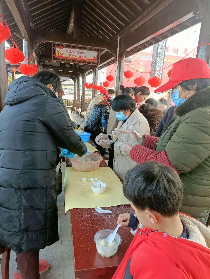 包湯圓區域則是一片溫馨熱鬧的景象。糯米粉、餡料等材料擺放整齊村民們紛紛動手,揉面、包餡、搓湯圓,忙得不亦樂乎。孩子們也在家長的帶領下參與其中,雖然手法略顯稚嫩,但臉上洋溢著純真的笑容。不一會兒,各式各樣的湯圓擺滿了桌面,大家在包湯圓的過程中,不僅傳承了傳統習俗,更增進了鄰里之間的感情。在活動中特邀村里獨守老人、五保戶、低保戶、留守兒童等這些特殊人群到村品嘗元宵,大家感受到村里對自己的特殊關愛。