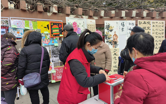 文化作品評(píng)選,共享藝術(shù)精神大餐。社區(qū)精心組織籌劃,調(diào)動(dòng)各年齡段居民的參與熱情,豐富作品形式,共收集作品100余幅畫,有非遺剪紙、繪畫、素描、書法等。本次作品評(píng)選由專業(yè)團(tuán)隊(duì)與大眾評(píng)委相結(jié)合,按照比例分配共同打分的形式,產(chǎn)生各個(gè)類別的獎(jiǎng)項(xiàng),所有作品在集市上一一展出,讓藝術(shù)真正融入居民群眾生活中。