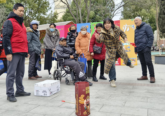 趣味游戲互動(dòng),縱享歡樂時(shí)光。社區(qū)在廣場(chǎng)中間設(shè)置了投壺、水果套圈圈、反詐騙等互動(dòng)游戲,吸引了眾多居民朋友的關(guān)注,居民們輪番上陣,大展身手,贏得了陣陣喝彩。熱烈歡樂的氛圍,迅速蔓延,拉近了彼此的距離。“這樣的集市真熱鬧!”家住附近的張大爺感慨道。