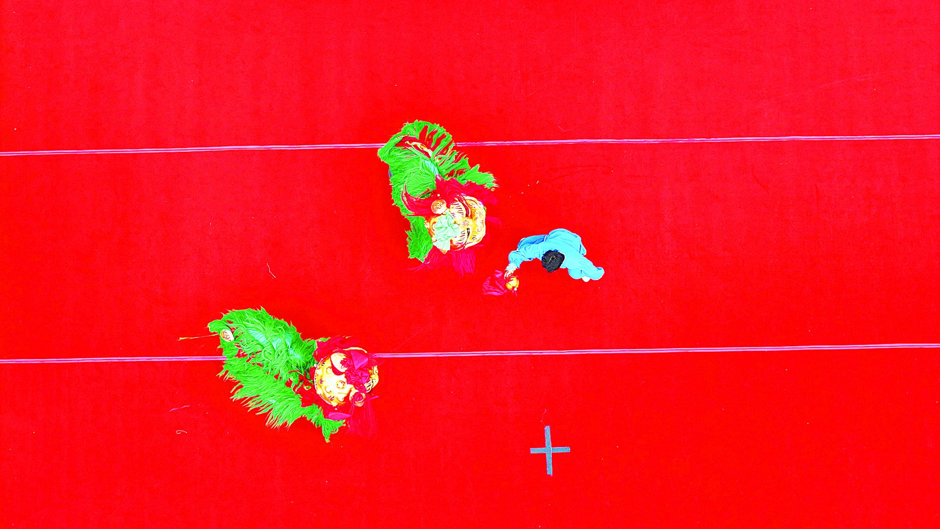 五河縣非遺踩街文化活動現(xiàn)場(無人機照片)。