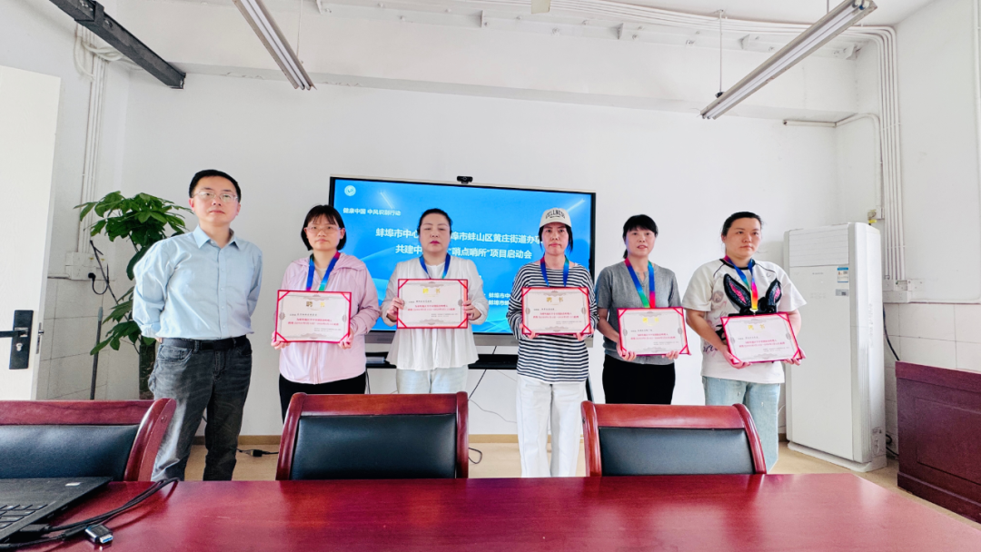 蚌埠市中心醫院神經內科主任葉斌與蚌山區黃莊街道黨工委副書記劉義簽署共建協議,標志著雙方合作正式啟航。葉斌為街道各社區計生專干授哨,并頒發“卒中吹哨人”聘書。周紅向黃莊街道頒發“哨點哨所”銅牌。