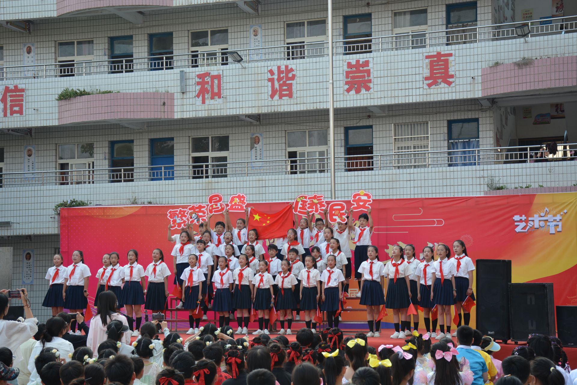 壓軸節目大合唱《我愛你,中國》的上演,更是將藝術展演推向最高潮。同學們用嘹亮的歌聲唱出對祖國的無限熱愛與祝福,激昂的旋律在校園上空久久回蕩,愛國之情在每個人心中澎湃涌動。