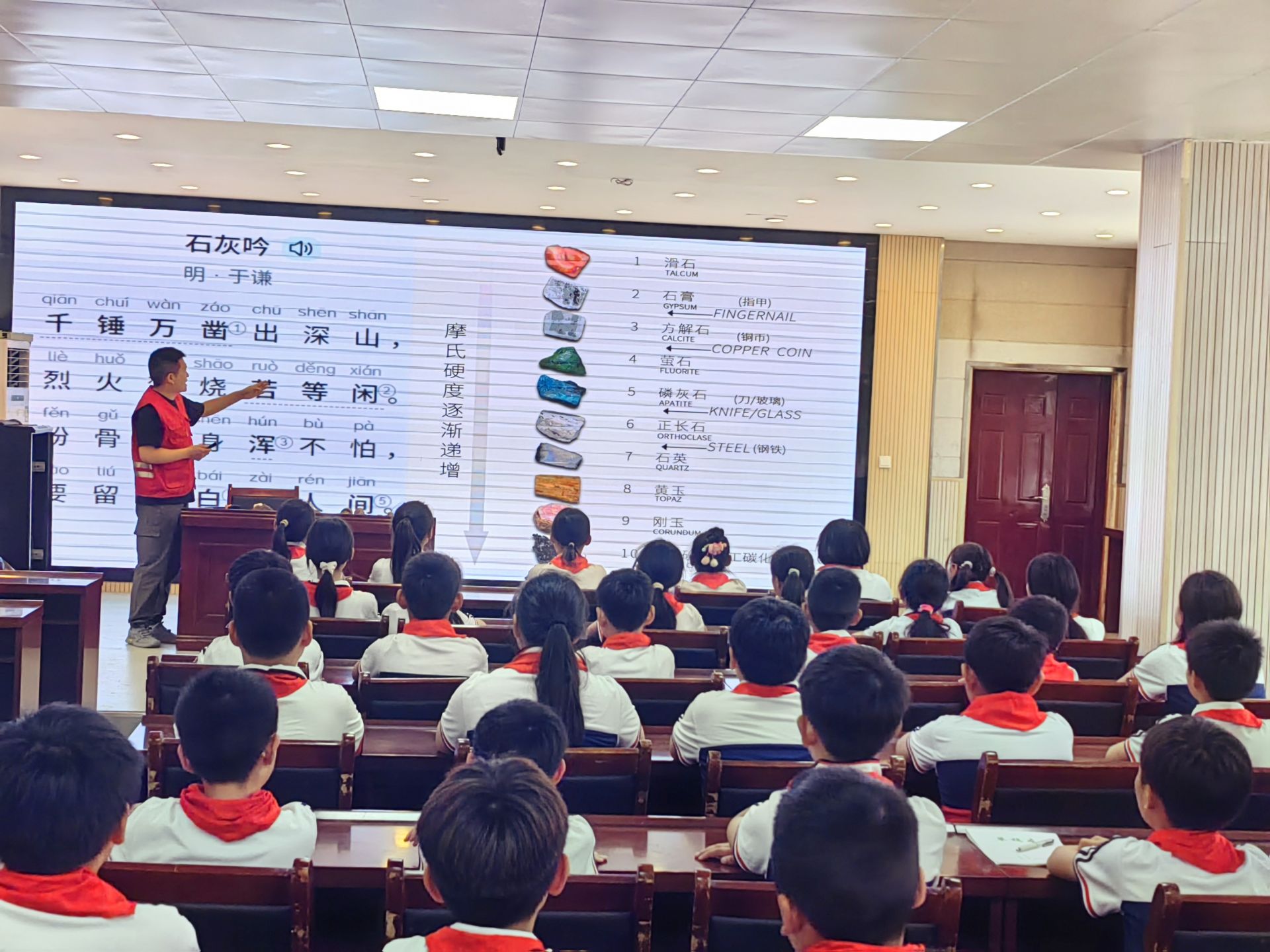 6月6日下午,安徽省地質勘查局第一水文工程地質勘查院攜手蚌埠市生態環境局,前往懷遠縣龍亢鎮實驗小學,舉辦了一場名為《詩文里的礦與石》地質科學知識講座。此次活動創新性地將傳統文化與地質科學相結合,激發青少年對地球科學探索的興趣。