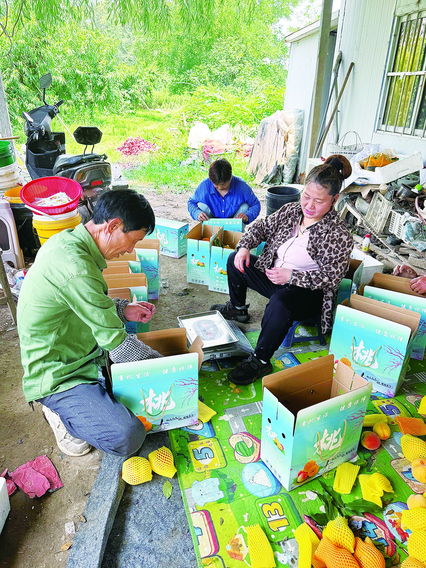 24日,記者在桃園看到,為保證桃子新鮮可口,凌晨四點,潘少飛夫妻便帶著兩名村婦摸黑開工。他們手提塑料桶,將一個個的桃子輕摘入籃。分揀時,潘少飛嚴格剔除有擦傷的果子,只留品相完整的裝箱。“所有的桃子都是精挑細選,寧可少賣10斤,也不能砸了口碑!”潘少飛說。