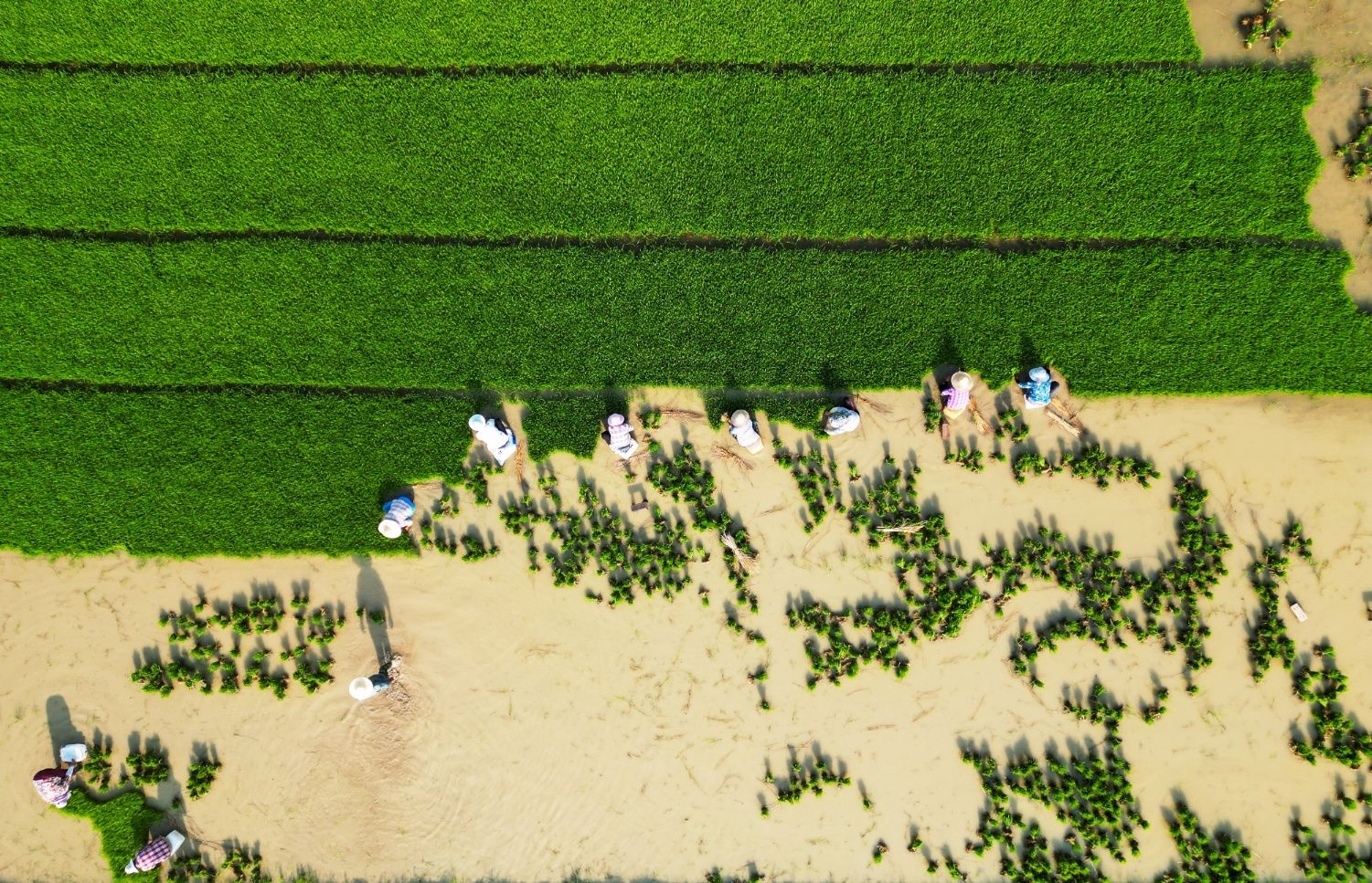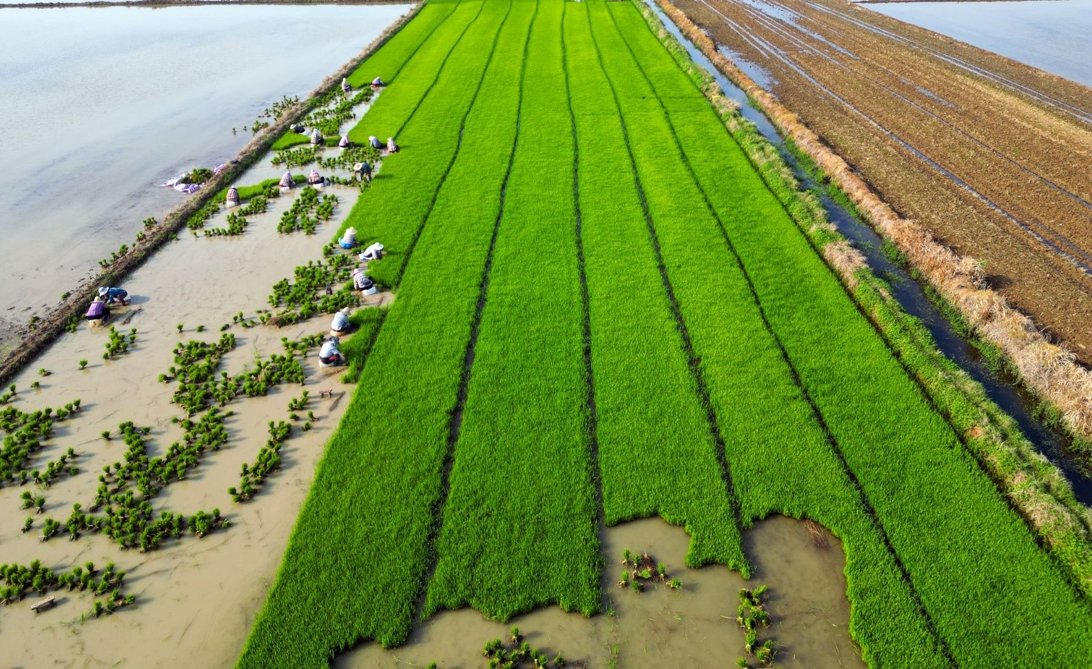 夏日時節,水稻插秧的農忙序幕正式拉開。在安徽省蚌埠市懷遠縣水田里,農民們頭戴草帽,腳踩泥濘,將一捆捆嫩綠秧苗,化作希望的“畫筆”,彎腰、分秧、插入水田,以辛勤汗水,勾勒出夏日里最美的耕耘畫卷,孕育豐收的期許 。
