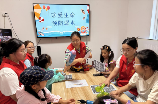 “防溺水大講堂”志愿者們通過情景模擬、急救演示,講解野外游泳的危害和自救技巧。隨后,孩子們化身“安全宣傳員”,向鄰里長輩宣傳,用童聲提醒“遠離危險水域,珍愛生命安全”。