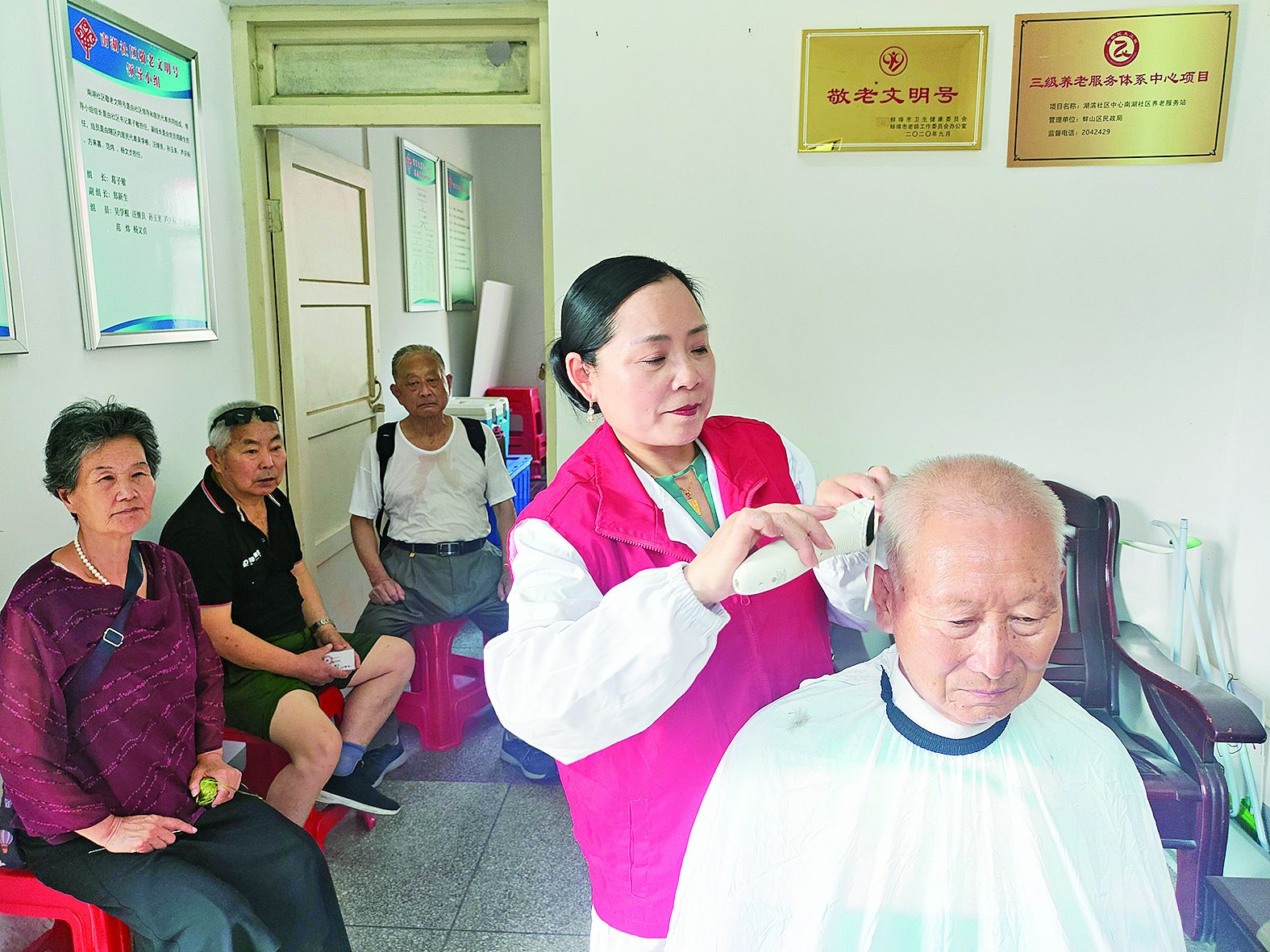 7月15日上午,蚌埠市南湖小區(qū)廣場老年活動中心暖意融融,蚌埠與愛同行公益協(xié)會的“幸福15”愛心義剪活動如期開展。理發(fā)推子的輕響與老人們的爽朗笑聲交織,勾勒出社區(qū)里最動人的民生圖景。