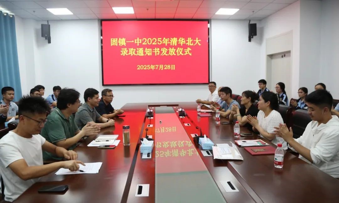 7月28日上午,固鎮一中舉行儀式,為2025年錄取清華大學和北京大學的優秀畢業生耿聞俊和崔豪哲同學發放錄取通知書,共同見證領取頂尖學府錄取通知書的喜悅時刻。