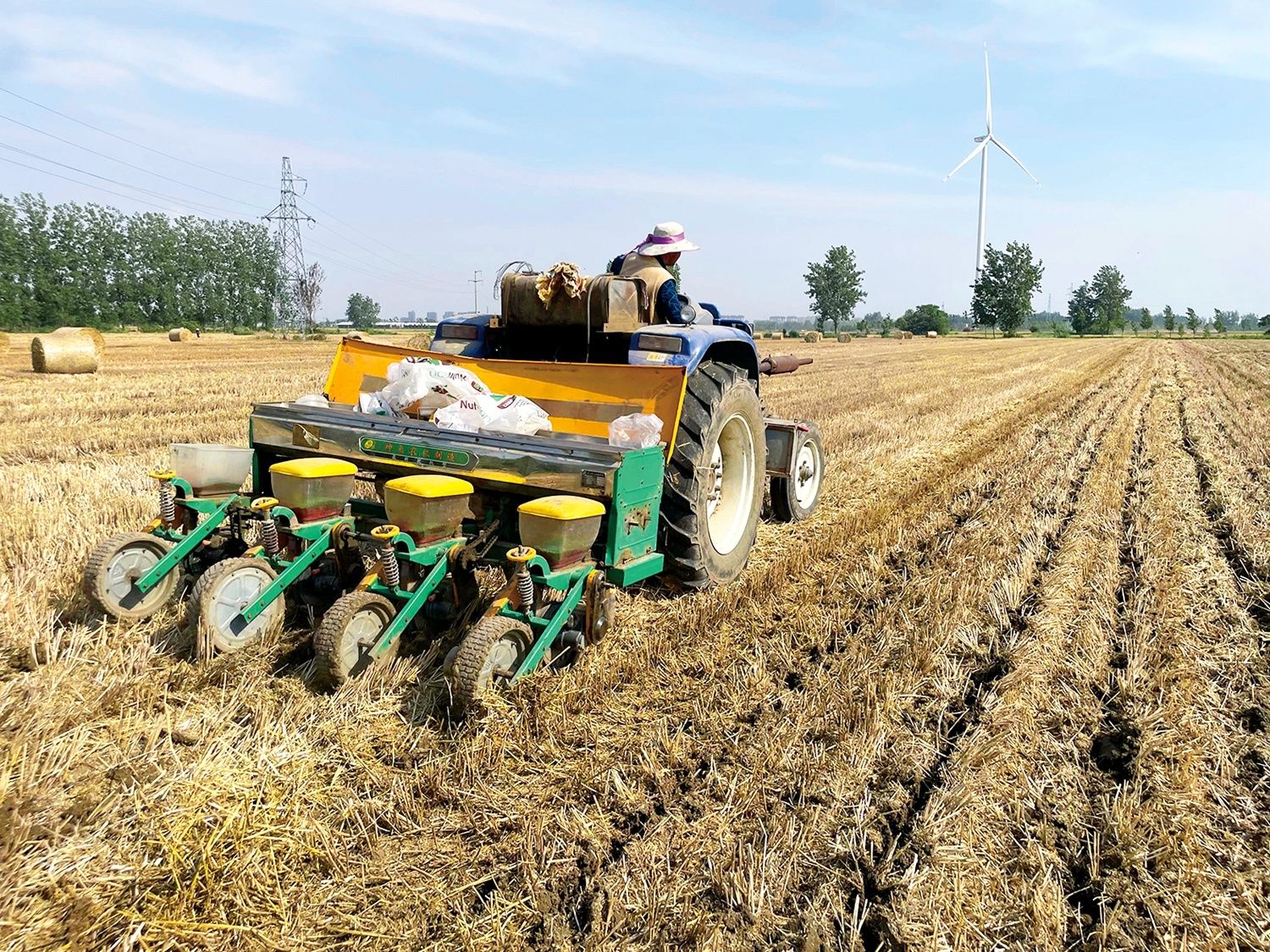 播種機(jī)仲集村的農(nóng)田內(nèi)播種。