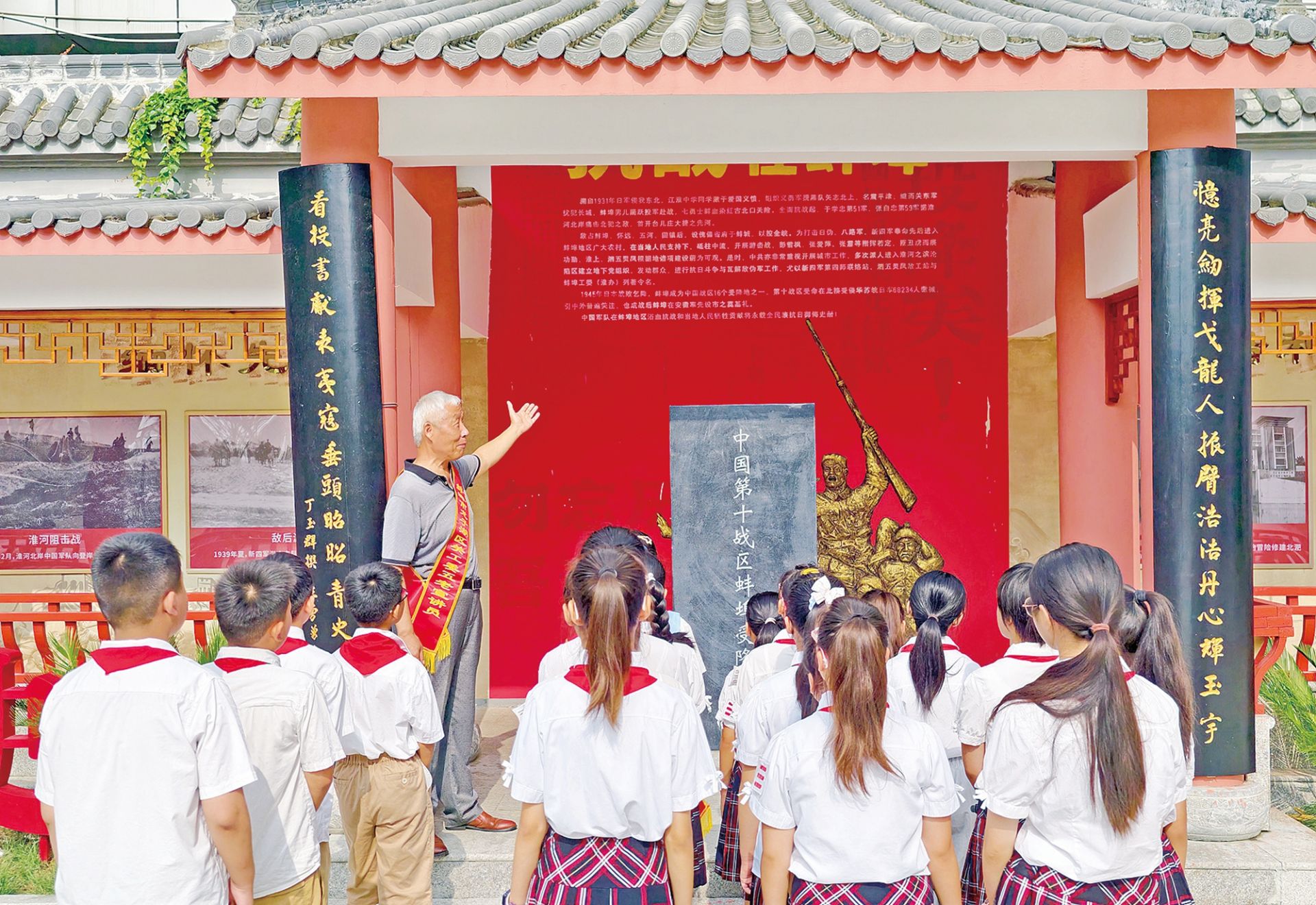 蚌埠市關工委五老報告團、龍子湖區關工委五老報告團與蚌埠市鳳陽路第一小學師生走進抗戰勝利公園,開展愛國主義教育活動。