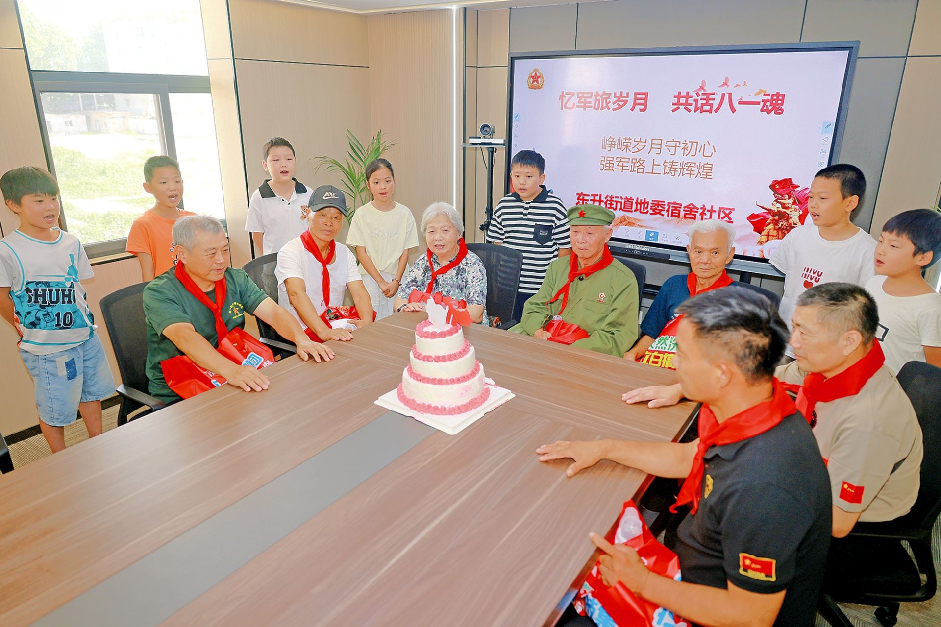 在中國人民解放軍建軍98周年到來之際,安徽省蚌埠市上下喜迎建軍節,進一步加強軍政軍民團結,營造擁軍優屬、擁政愛民濃厚氛圍,掀起“軍民共建魚水情深、軍地發展再鑄輝煌”的熱潮。連日來,記者走進社區、街頭及訓練場等,用鏡頭記錄下社會各界以自己的方式向最可愛的人致敬。7月30日,東升街道地委宿舍社區開展以“憶軍旅歲月 共話八一魂”為主題的“八一”建軍節系列活動。