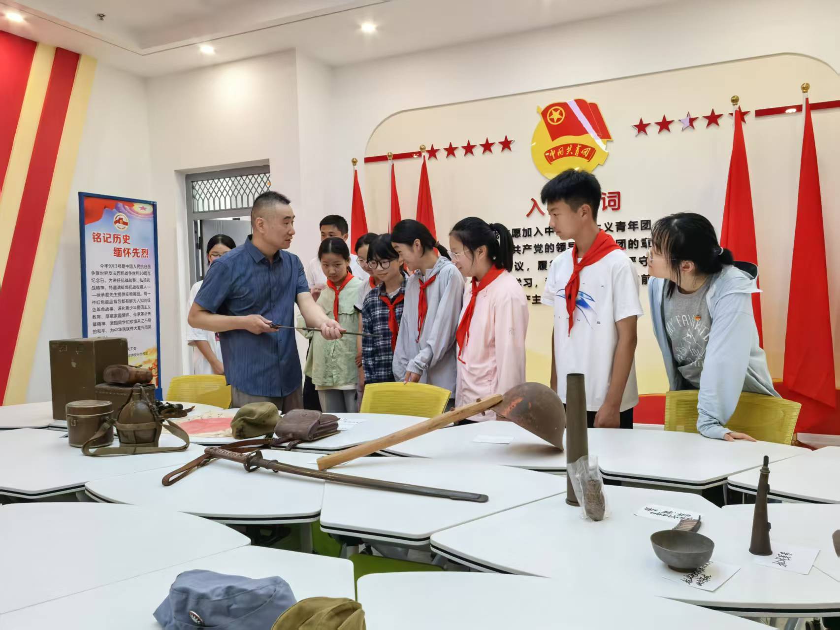 參觀過程中,黨團員教師不時駐足討論,青年志愿者教師們則細心為學生講解展品背后的故事,幫助青少年理解歷史內涵。整個參觀過程莊重有序,歷史物件成為最生動的教材,讓抗戰精神可觸可感。