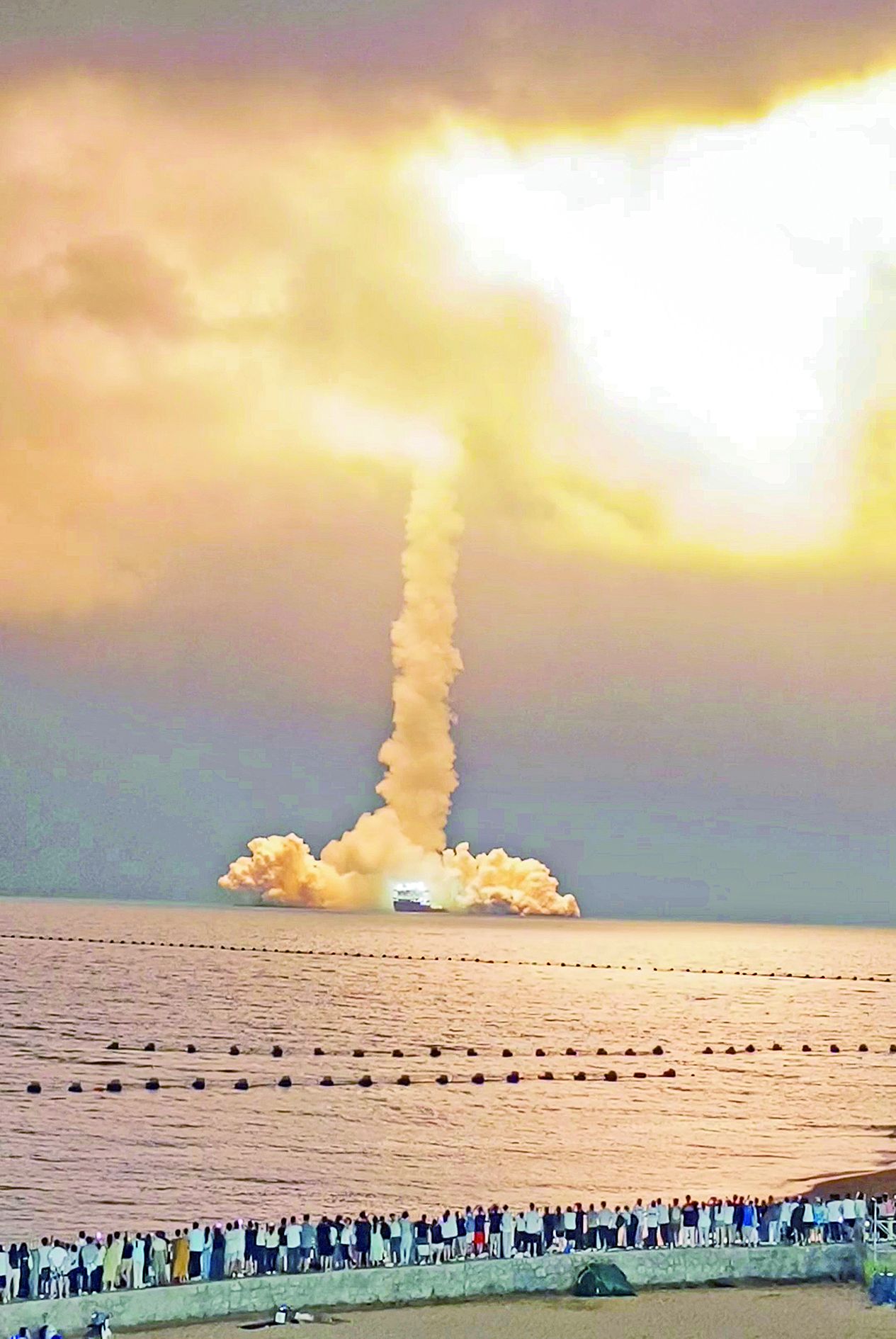 8月9日0時31分,太原衛星發射中心在山東日照附近海域,用捷龍三號運載火箭成功發射吉利星座04組衛星,衛星順利進入預定軌道,發射任務圓滿成功。年近七十歲的蚌埠市民、攝影愛好者李宗和,專程趕赴現場,用鏡頭定格這一歷史性瞬間。