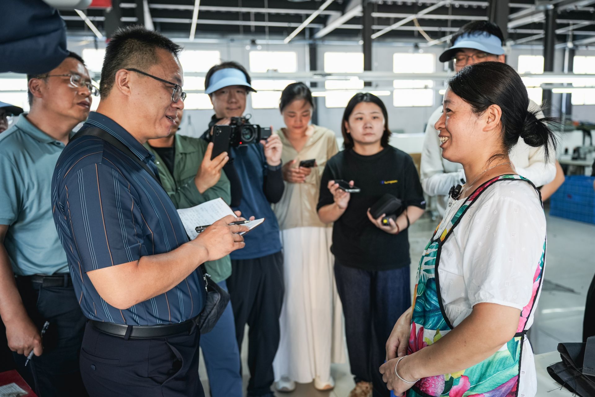 當(dāng)天上午,采訪團第一站來到紅亮鄉(xiāng)村振興產(chǎn)業(yè)園內(nèi)的紅亮箱包廠,這家創(chuàng)辦于2015年的企業(yè)吸納了近兩百名周邊群眾就業(yè)。企業(yè)車間里掛著醒目的橫幅“看好孩子管好田,一天能掙百十元”。“在這里工作既能照顧家庭,又有穩(wěn)定收入,很滿足。”車間一組組長鄭繼影笑著說。