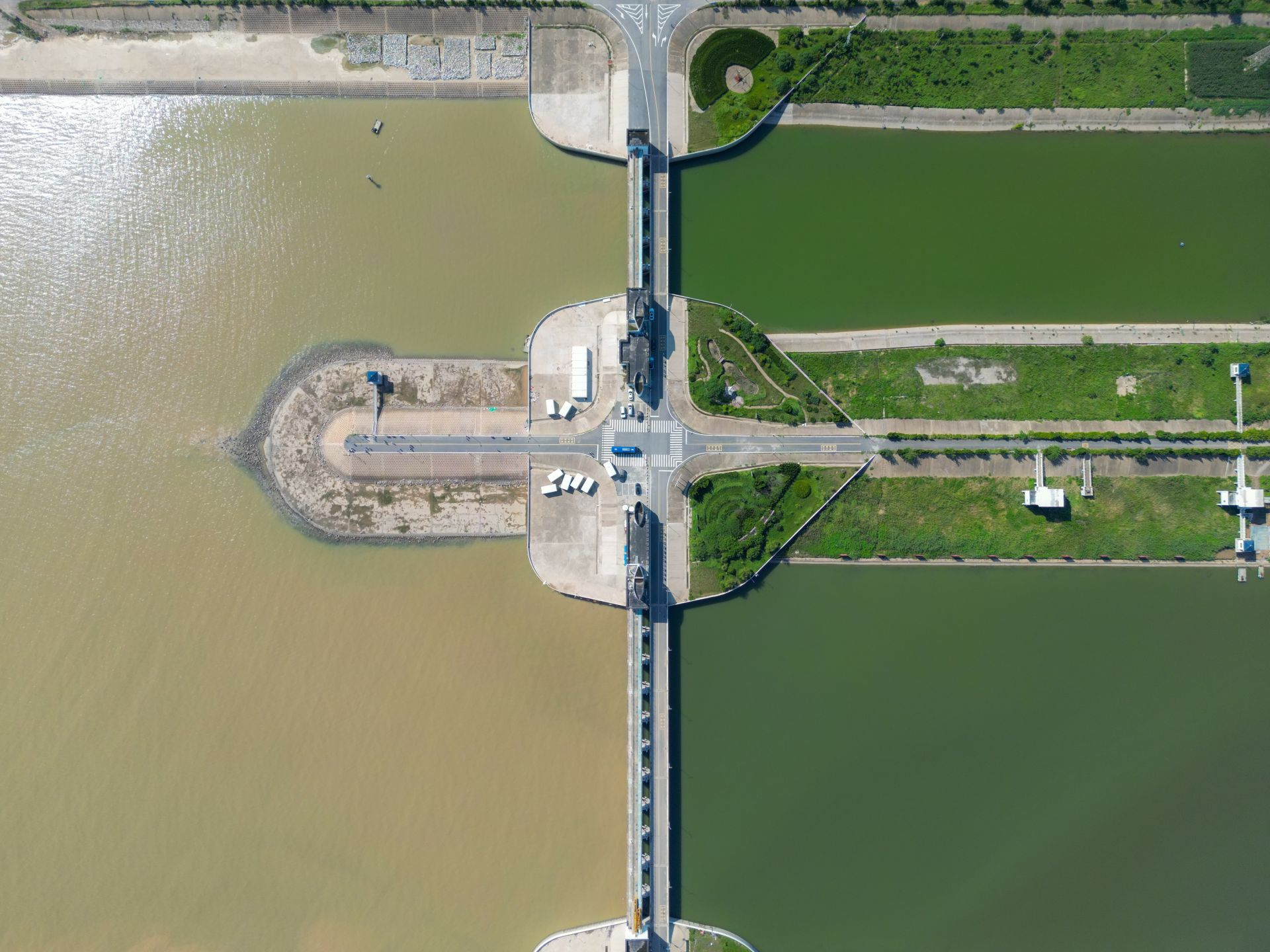 在濱海縣城東側,淮河入海水道和張家河交界處,高高隆起的堤壩上一個嶄新的建筑聳立,這是淮河入海水道二期工程張家河閘站。