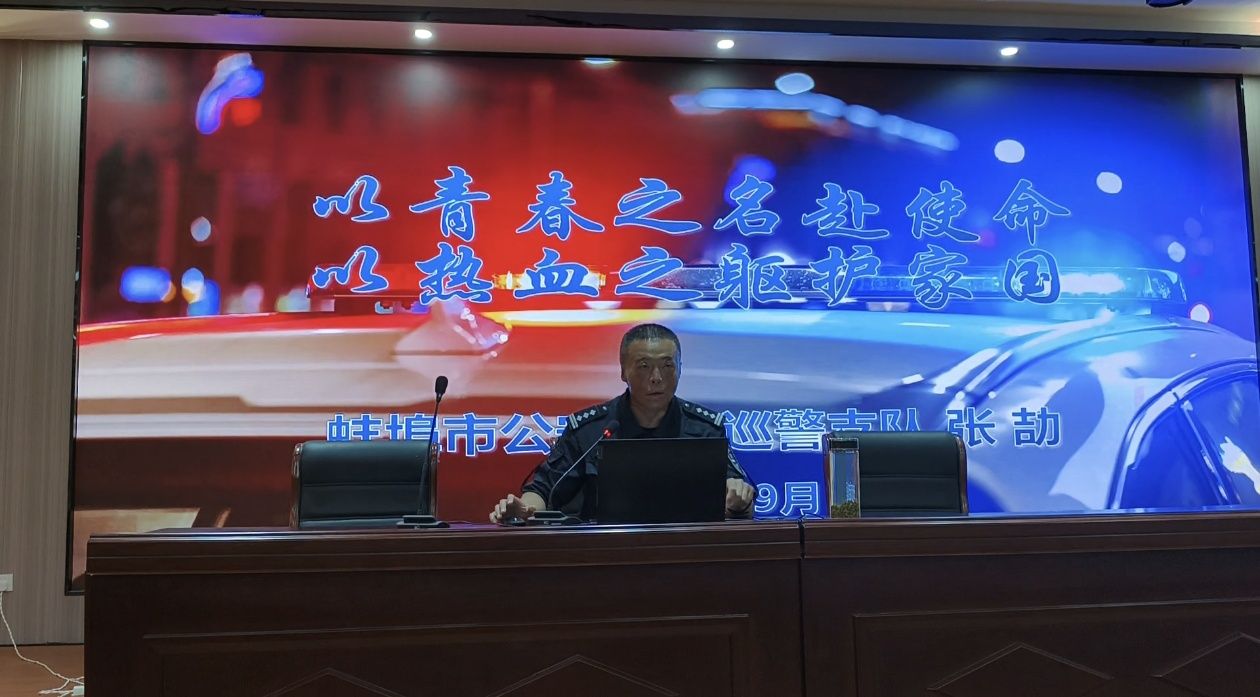 9月17日,時代楷模、中國好人、蚌埠市公安局特警支隊支隊長張劼走進蚌埠一中,為師生們帶來了一場題為“以青春之名赴使命 以熱血之軀護家國”的宣講。