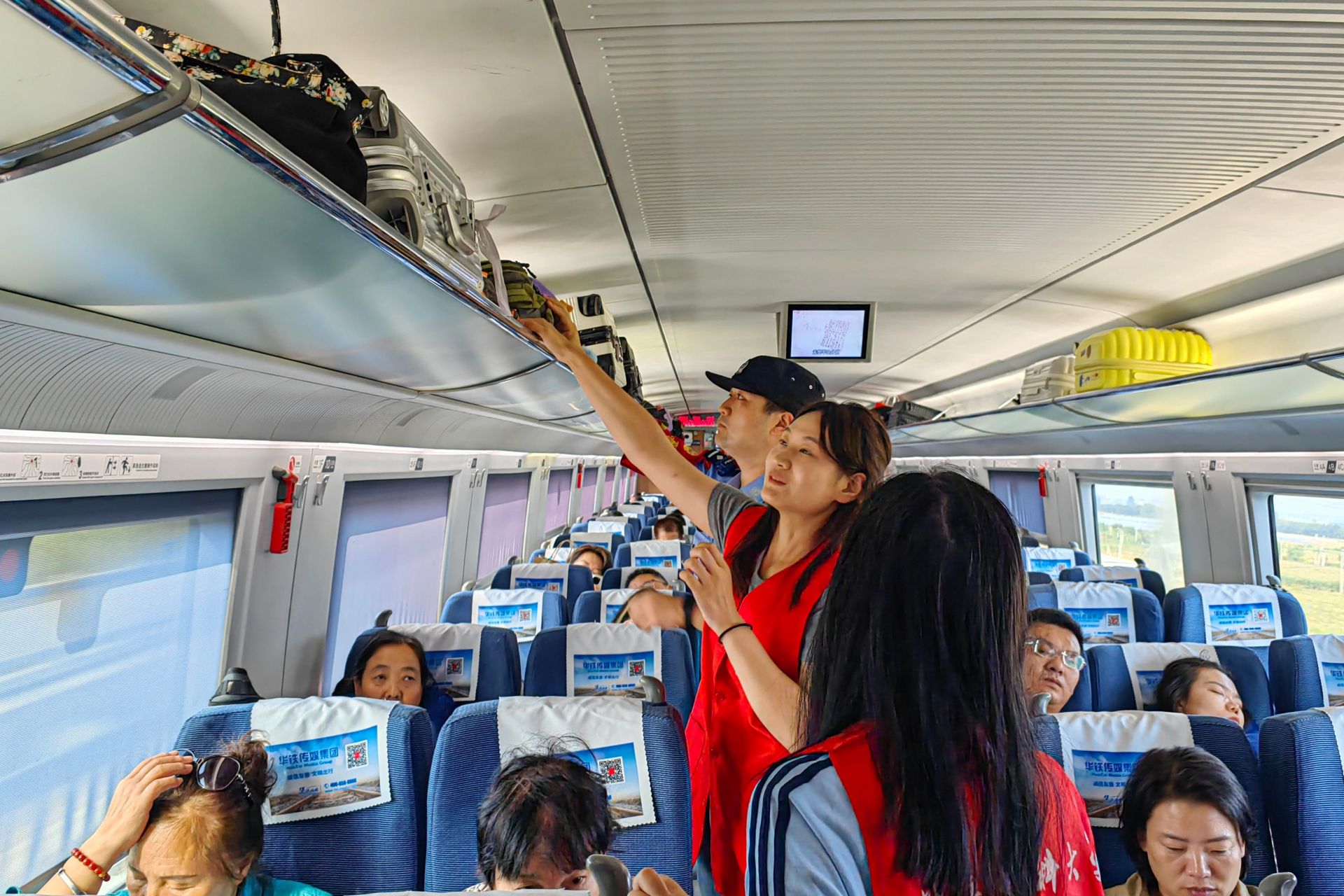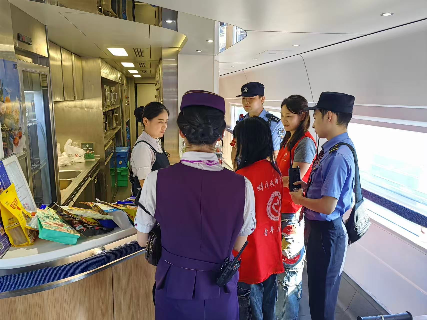 同時(shí),志愿者們還化身“反詐宣傳員”,結(jié)合近期高發(fā)電詐案例,通過(guò)發(fā)放宣傳冊(cè)、現(xiàn)場(chǎng)講解等方式,向旅客普及反詐知識(shí),成為高鐵上一道亮麗的風(fēng)景線。
