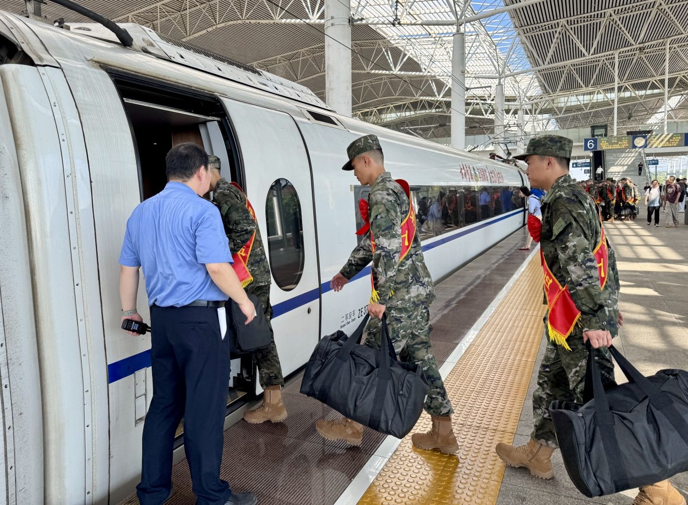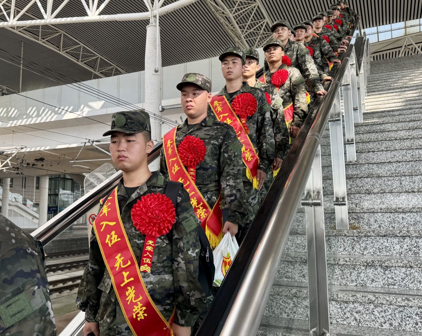 送兵現場,氣氛莊重而又熱烈,蚌埠軍分區領導現場歡送新兵。570余名身著嶄新迷彩服的新兵們,肩扛使命擔當,在親友、戰友與家鄉人民的祝福中,帶著對軍營的憧憬、對祖國的忠誠,分批登上列車,奔赴全國各地軍營,開啟軍旅生涯。(尤靖文)