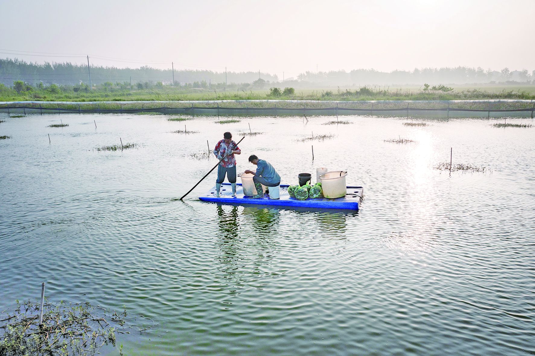 玉米黃了,蝦蟹肥美……淮畔大地以豐收的喜悅來回饋農民的辛勤勞作。