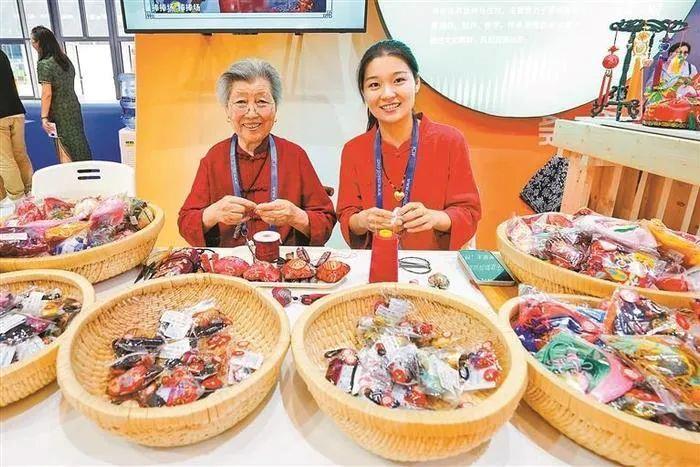 王秀英和孫女孫歌堯展示“針棒香包”制作技藝。