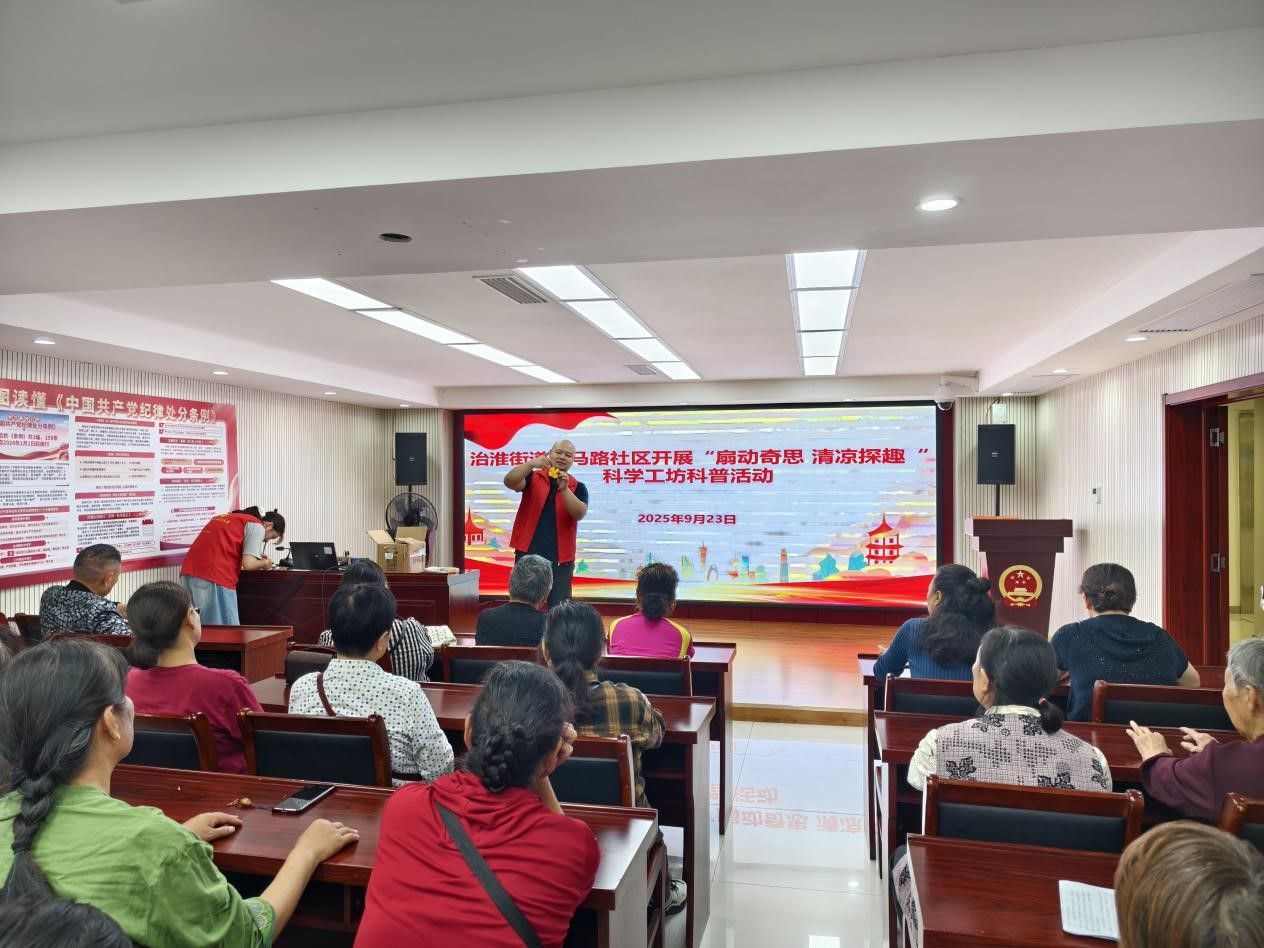 為進一步豐富社區居民的精神文化生活,普及科學知識,提升動手實踐能力,近日,治淮街道新馬路社區開展了“扇動奇思 清涼探趣”科學工坊科普活動。本次活動吸引了轄區眾多居民熱情參與,區科協的志愿者為活動提供了專業的支持與指導。
