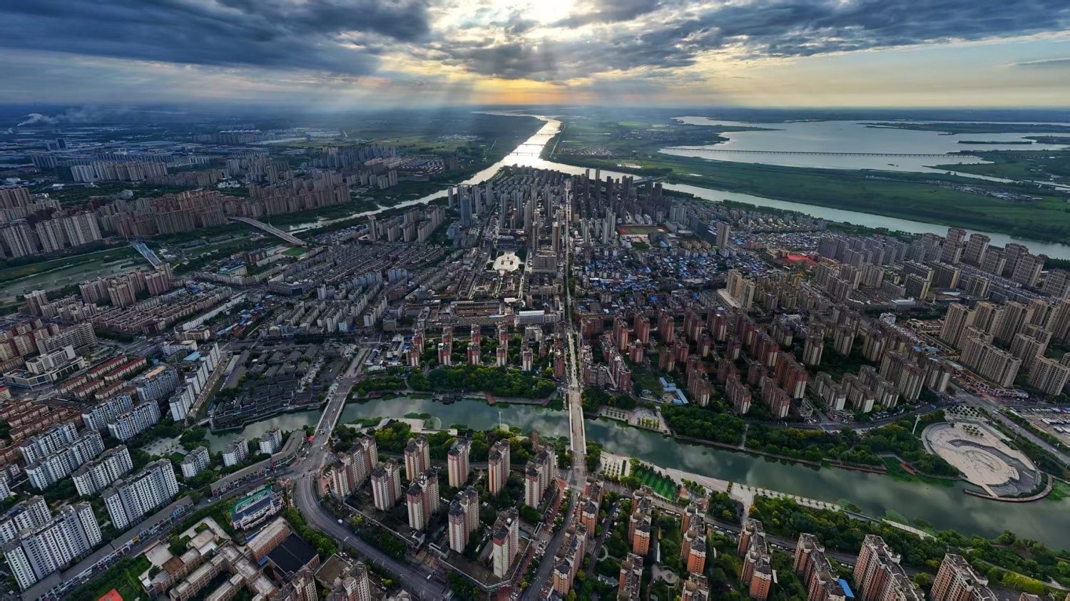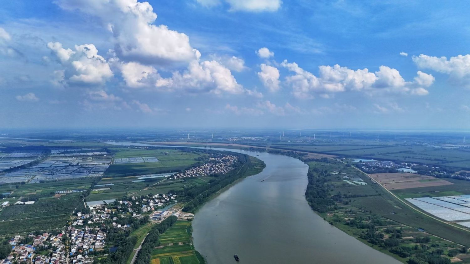 秋日,在安徽省蚌埠市五河縣,千里淮河逶迤向東,秋天的云朵綻放出藍天的空曠,美麗的淮河兩岸斑斕。