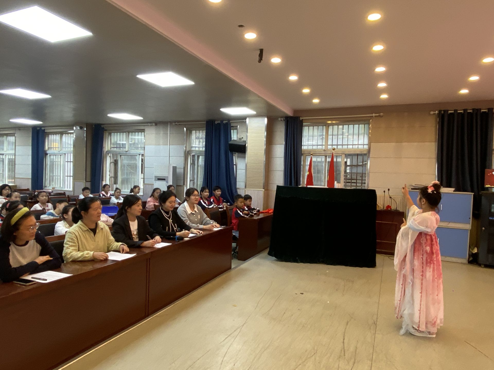 校級展演現場,氛圍莊重而熱烈。低年級學生身著傳統服飾,以稚嫩的嗓音吟誦《古朗月行》,“小時不識月,呼作白玉盤”的詩句引發全場共鳴;中高年級學生則通過配樂朗誦、情景演繹等形式,將《水調歌頭?明月幾時有》的“但愿人長久,千里共嬋娟”傳遞得深情動人……評審團依據誦讀節奏把握、情感精準傳達以及臺風穩健展現等維度,最終確定了榮獲一等獎、二等獎、三等獎的優秀選手。