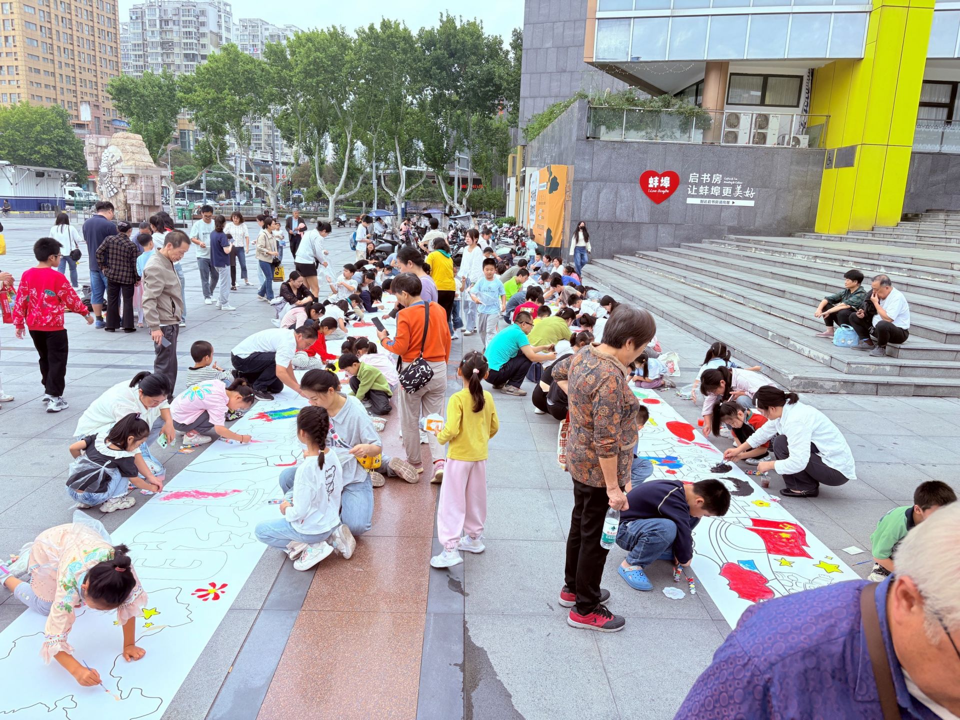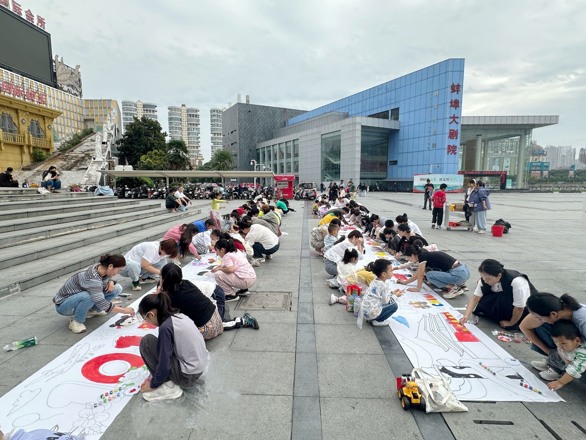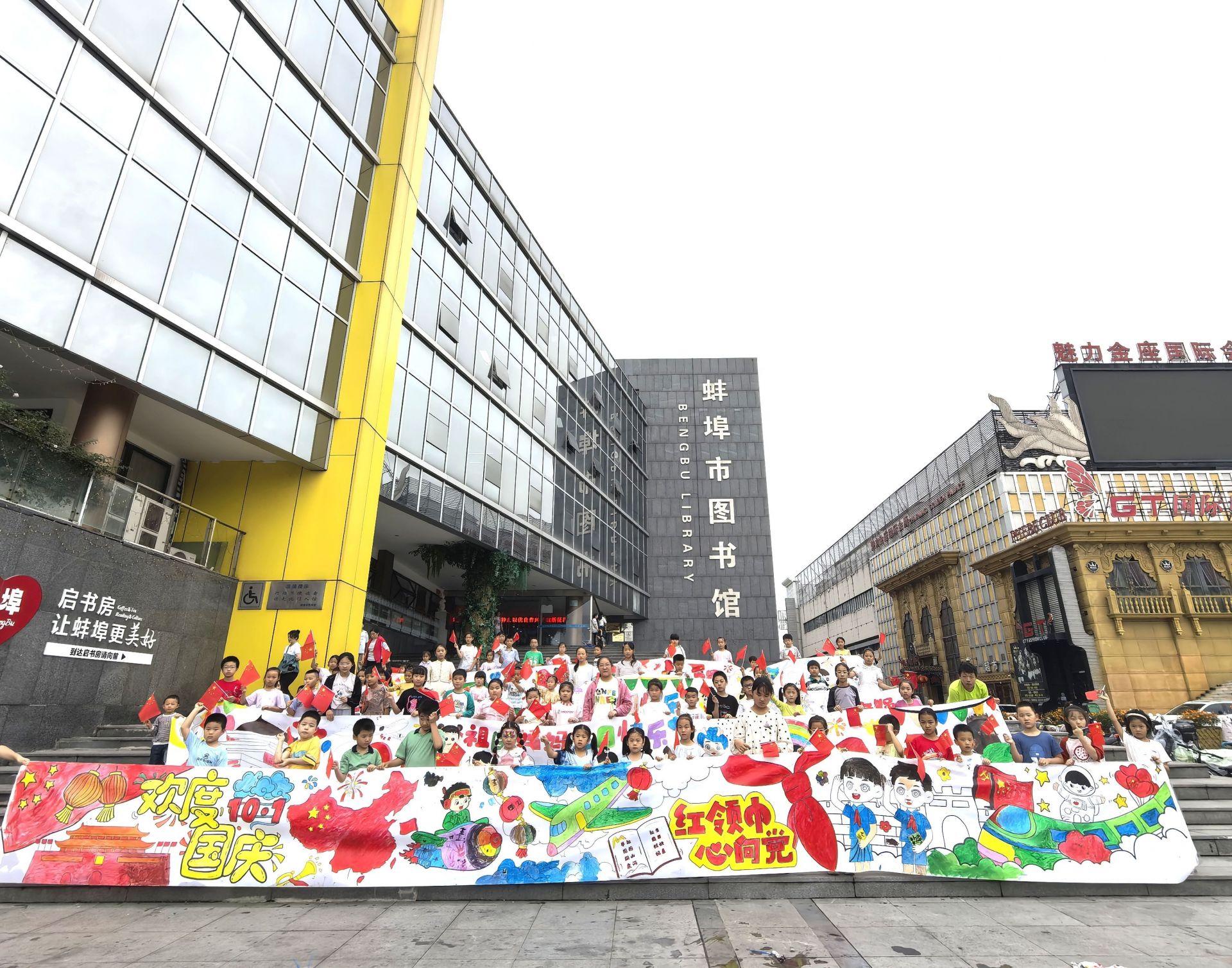 金秋送爽,丹桂飄香。10月1日下午,蚌埠市圖書館前,40米長的潔白畫布如銀練般鋪開,近百位讀者齊聚一堂,以筆為媒、以彩為語,將對祖國的真摯祝福傾注于筆墨之間。