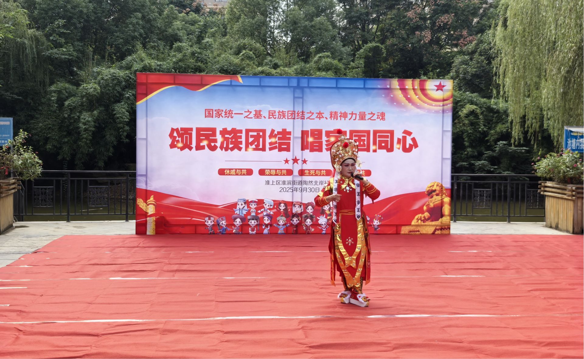 為大力弘揚民族團結精神,厚植愛國主義情懷,迎接國慶佳節的到來,9月28日下午,由淮上區淮濱街道陶然北岸社區主辦的“頌民族團結,唱家國同心”主題文藝演出在陶然北岸東區小廣場溫情上演。來自各民族的演職人員與現場觀眾歡聚一堂,以歌聲抒發深情,以舞姿傳遞團結,共同奏響了一曲鑄牢中華民族共同體意識的時代贊歌。