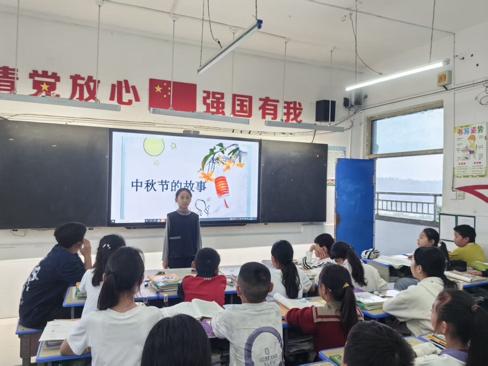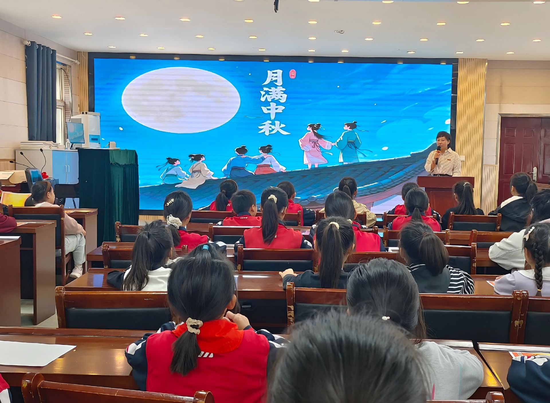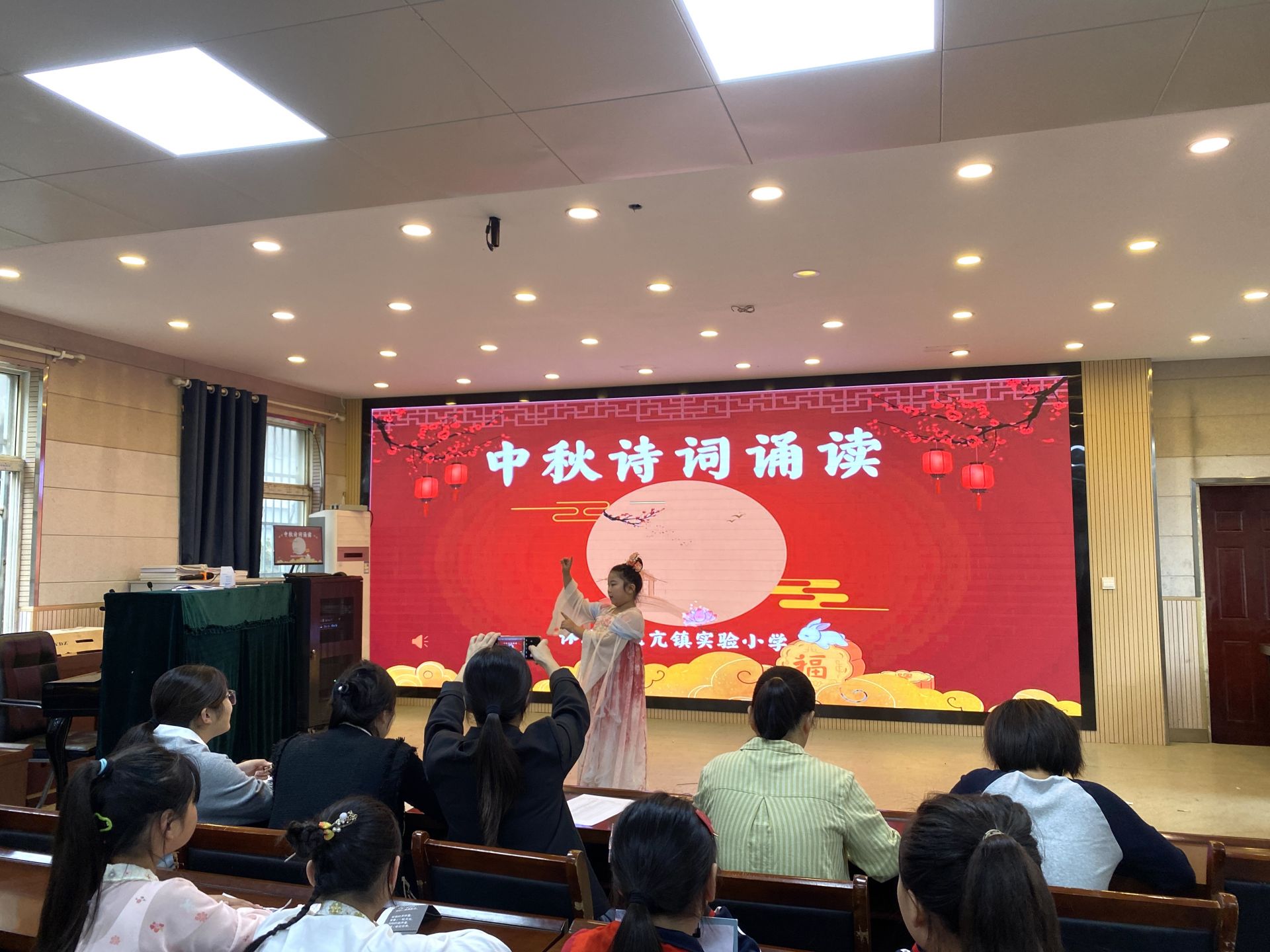 詩詞與故事是本次活動的兩大“文化載體”。中秋詩詞誦讀會上,低年級學生用稚嫩嗓音念誦中秋童謠,中年級結合意境插畫解讀經典詩句,高年級學子身著傳統服飾,配樂誦讀《水調歌頭?明月幾時有》,同學們卓越的表現贏得了熱烈的掌聲。班級故事會上,中高年級學生以“故事大王”的身份,精彩演繹了中秋佳節的傳說故事;低年級學生則以生動的表演形式,吸引了同學們的濃厚興趣。