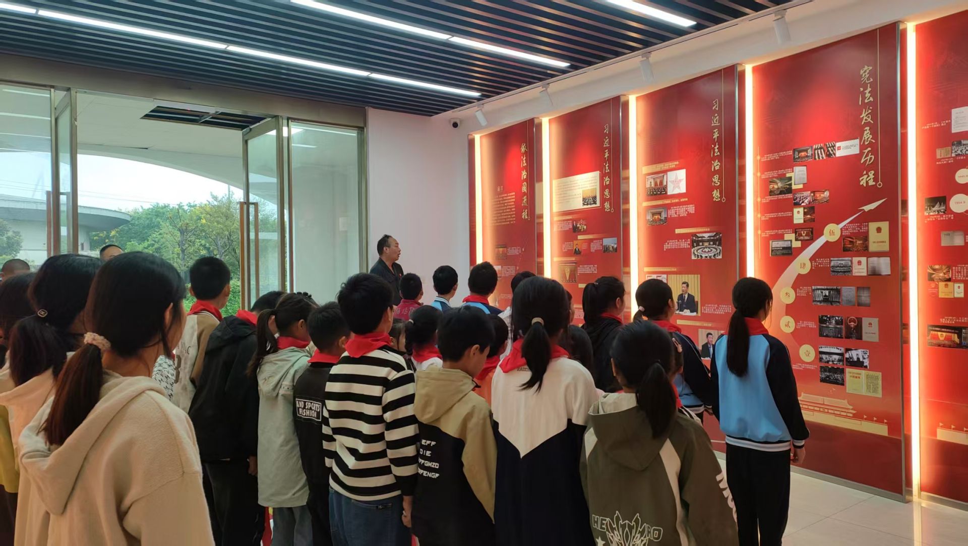 活動首站為法治展廳,講解員圍繞“依法治國進程”“習近平法治思想”及“憲法發展歷程”等內容展開講解。一張張歷史圖片、一個個法治故事,讓課本中抽象的法律變得鮮活,同學們專注聆聽、不時提問,眼中滿是對法治文明的敬畏。