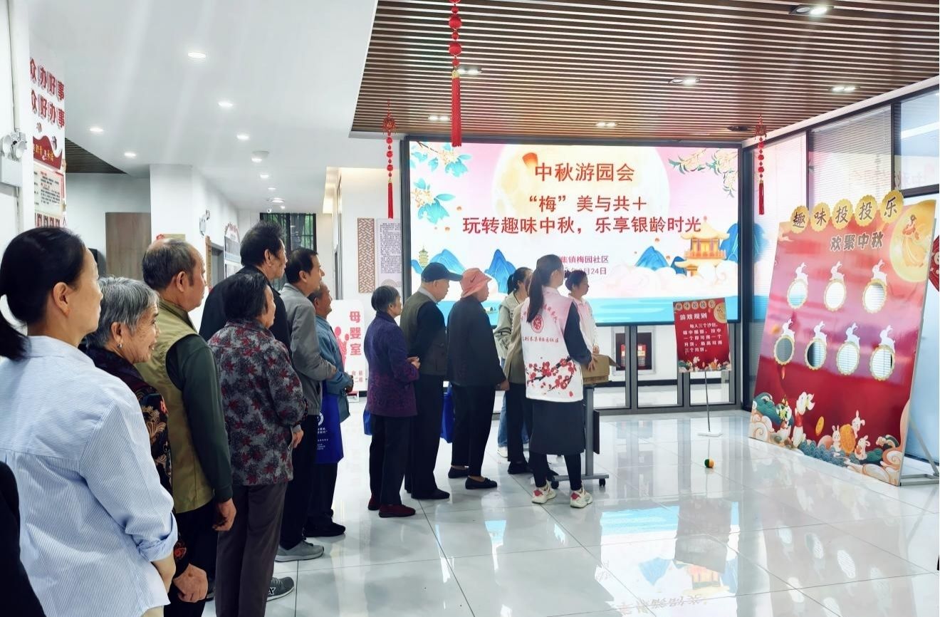 “中了!又中了一袋月餅!”社區大廳內,退休老人曹大爺在扔沙包游戲中接連獲勝,引得現場歡笑不斷。本次活動設置了扔沙包、套圈等游戲項目,并專門布置了中秋主題打卡拍照區,鮮艷的背景板配上繽紛的氣球,格外喜慶。老人們或專注投擲,或排隊套圈,不時傳來“差一點就中了”的惋惜與歡笑。拍照區也人氣十足,大家或獨自留影,或結伴合影,社區志愿者主動幫忙拍攝,記錄美好瞬間。“好玩有獎還能拍照發朋友圈,這個中秋過得真開心!”剛拍完照的李奶奶高興地說。
