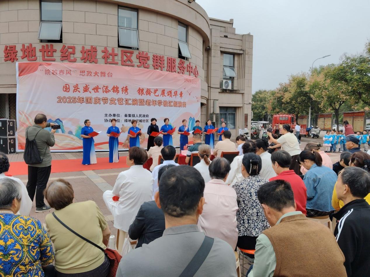 在舉國歡慶中華人民共和國成立76周年之際,為豐富群眾精神文化生活,展現(xiàn)國家發(fā)展成就與人民精神風(fēng)貌,凝聚社會(huì)向心力,增強(qiáng)廣大黨員群眾的愛國情懷與民族自豪感,蚌埠高新區(qū)秦集鎮(zhèn)綠地世紀(jì)城社區(qū)舉辦了主題為“國慶盛世添錦繡 銀鈴藝展頌華章”的國慶節(jié)文藝匯演暨老年學(xué)校匯報(bào)演出,吸引轄區(qū)居民觀看,現(xiàn)場座無虛席,每個(gè)人的臉上都洋溢著幸福的笑容。